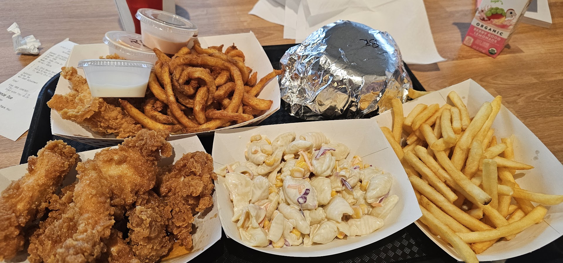 Read moreI decided to try this spot on my own before my family. The drive-through was fast. It was a little weird because the default recording when you pull up says you're at a pizza place. I got the chicken pieces, curly fries, and the Mac and cheese. Fast, friendly service. When I got home to eat, there were no napkins, no utensils, and no sauce for my pieces. I'm not sure if I was supposed to order the sauce separately or not. The chicken pieces were a little oily but would've been cut through well with the right sauce. They were cooked perfectly, very tender! The curly fries were better than other curly fries I've had, but not very crunchy. The Mac and cheese were actually shells and cheese and had joined together in a full clump in the 5 minute drive home. I got the Mac and cheese so I could see if my kid would eat it. When I opened it, I knew I couldn't even ask my kid to try it. I could tell everyone was working hard, and it was nice to see an employee dropping, not-frozen hand battered chicken pieces into the fryer as I waited. I'm looking forward to trying the sandwiches and trying again as they get into...
