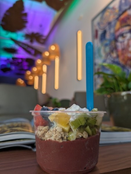 Read moreDelightful & delish! We really enjoyed some of the new flavors and the quality is top notch. Can’t get fresher! I made a meal with mine since the portions are generous and was so satisfied. I could eat there everyday and not get bored since there’s so many healthy, yet yummy & fun combos. The environment is pristine and easy going with a chill vibe just like Brazil. Lively in decor, great music yet, at the same time modern & restful with comfy sitting options. There’s even a fun “tot spot” for family friendliness. We got to chat with the owners at the soft opening and found them to be brilliant & caring. The hosts are kind, knowledgeable and quick to cater to whatever you want. It’s a great place to meet up with friends or have quiet time in a delicious exotic way. I’ve heard even DoorDash delivers and the açaí is still frozen & great on the receiving end. Dine in or taking out, it’s perfect...