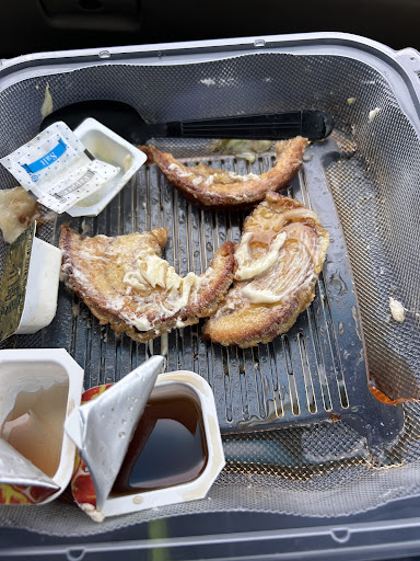 My boyfriend asked for no tomatoes on his taco salad and they loaded it up with tomatoes. It actually looked delicious, but the only thing that was pleasant about it was the taco shell. He had maybe six or seven bites of it. My scrambled eggs had no flavor at all. And I know what youâre gonna say. âWell, just season it with salt and pepper.â Sorry, but I like my food seasoned and that means actual seasonings. Itâs extremely easy to make delicious eggs. I figured the cheddar cheese on top of them might save the situation, but obviously not. The cinnamon French toast was just OK. I LOVE French toast (especially making it which is what I shouldâve done today), so I was very disappointed in the lack of quality. The bacon was chewy as hell and had a weird bubbly appearance on parts of it, almost like it got splashed with something. (See pics) We didnât finish ANY of the food & spent about $40. Still hungry! I decided on an impulse purchase of coconut cream pie and had high hopes. The crust was chewy, and all I tasted was a mouth full of cool whip. Definitely had to be made by them. I spit out the one bite I took which says quite a bit.