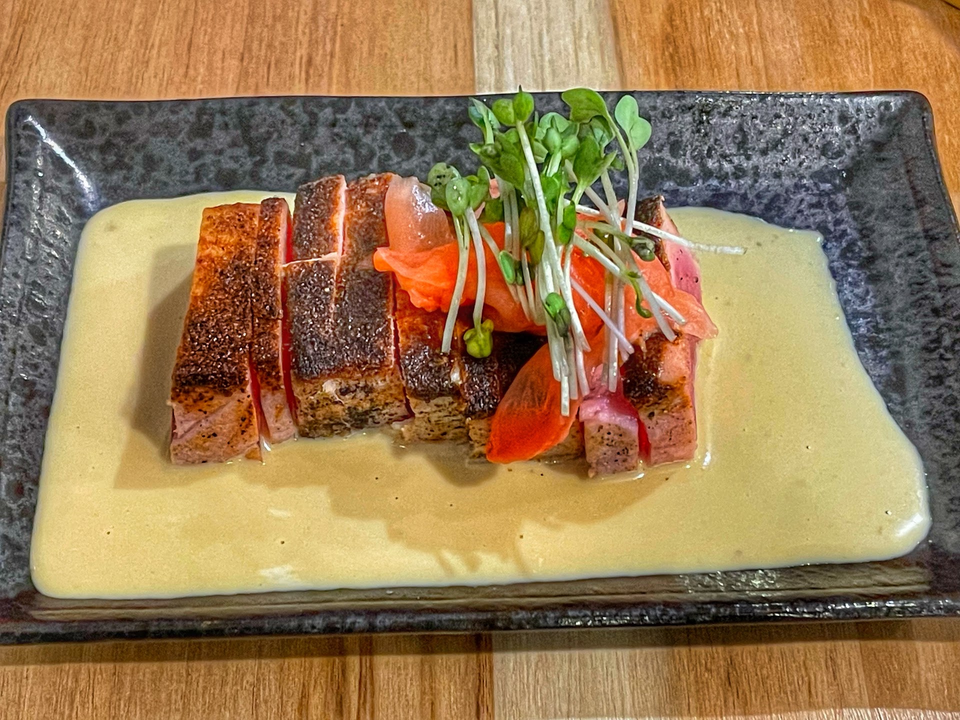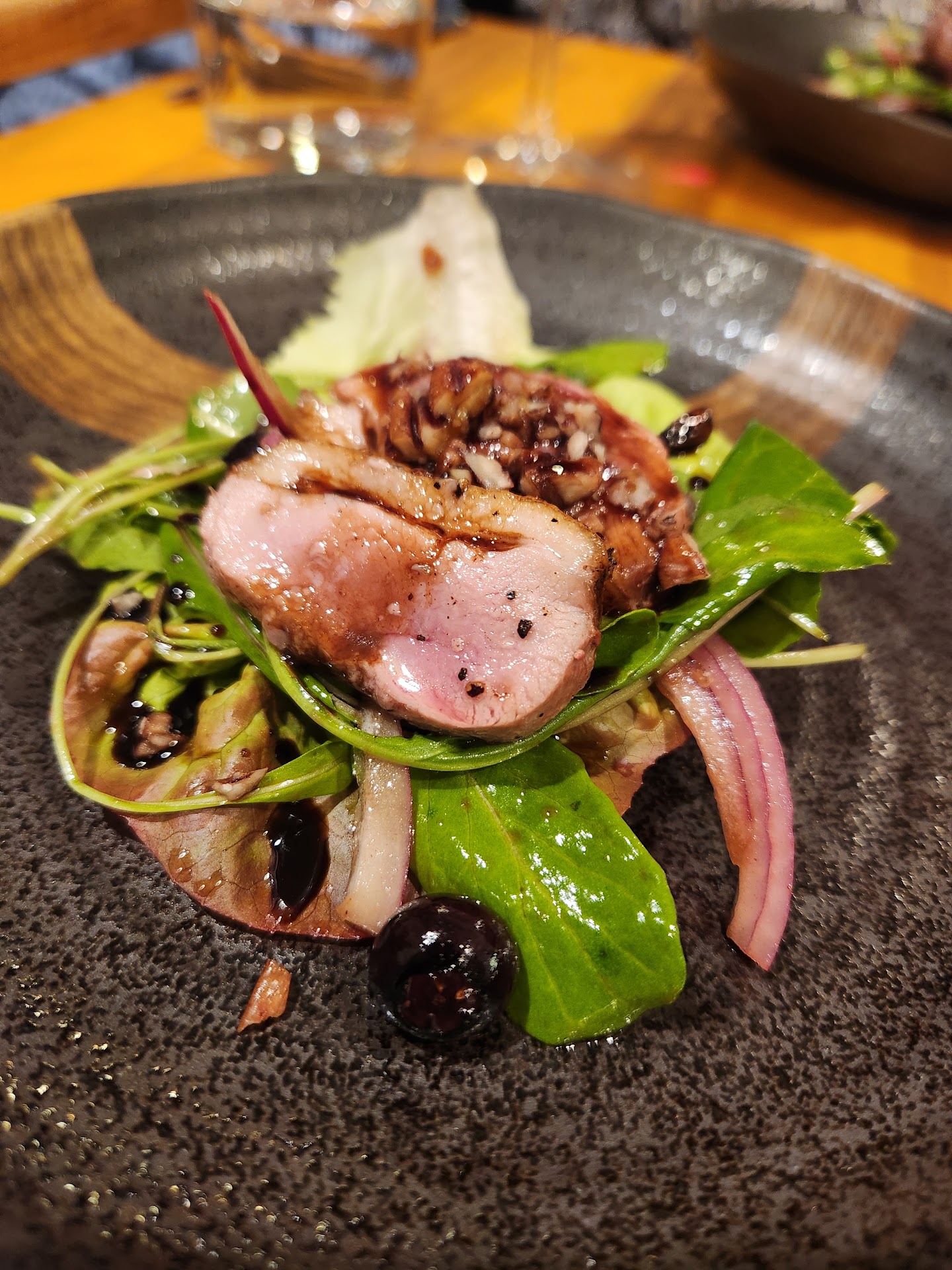 This was a prefix menu, which made ordering super easy.. and much to our surprise.. such an amazing choices of flavors and textures. We started with a duck appetizer salad, followed by cod (OMG sooooo good) topped with lamb. Honestly, it was all made to perfection.