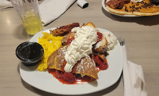 First off, Peter, the manager at this location, needs to be commended for his attentive service... too bad he wasnt the one who cooked our food, took our order, or dropped the ball on every aspect of our visit. The store was not busy which left us wondering why we couldnt get our server to stop back and check in on us. We order soda and they tell us they are out of Mello Yello. How do you run out of soda?? Its most likely that noone switched the syrups around, not that they were actually out of Mello Yello. My pancakes and french toast came 7 minutes AFTER my order was put on the table...and were undercooked. Zero follow-thru from any staff (aside from Peter) from that point forward. You would think if you are going to pay $5.50 for two softdrinks that they would, at least, stop by and give you a refill. The server was some young girl with blonde hair. You will know its the same server when she walks away from you in mid-sentence (with a dumbass smirk/smile on her face) when you are deciding on what to order.