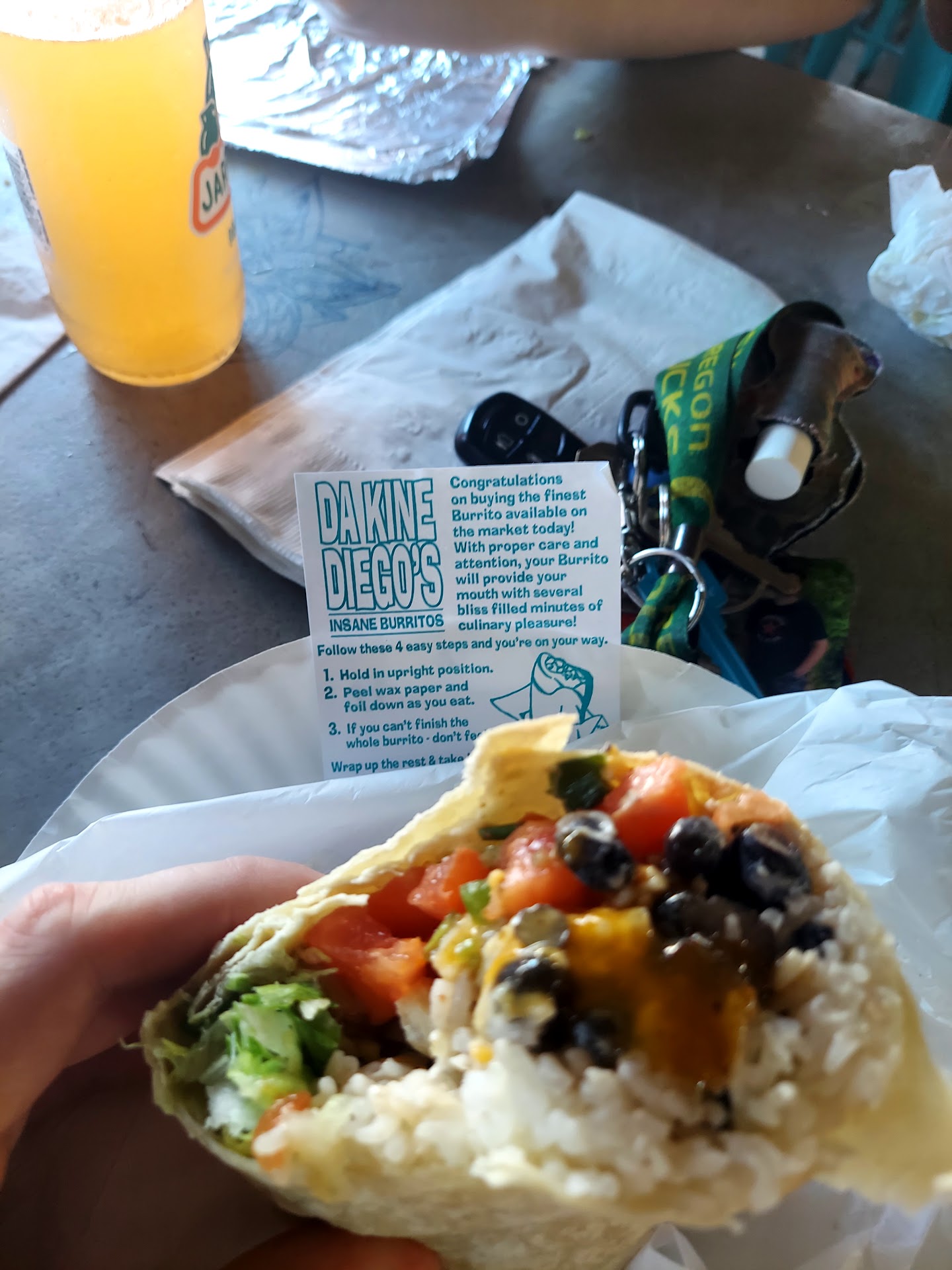 Read moreMy first visit to Da Kine Diego’s Insane Burrito this afternoon. I live an hour north of here but was down for a week getaway alone in a condo on the beach. I read all the reviews and thought I’d try anyway as everyone had their own opinion on taste. The guy who took my order was a doll. I told him I wanted the pork insane burrito with cheese and I heard that it was all rice and beans. As it was my first visit I expected him to impress me and that he did. OMG the burrito was huge and this girl can eat. Many complain that it is bland but hello, the sauces are amazing so you can customize it to your level of spice. My burrito was full of delicious pork, veggies, including cabbage which I asked for and not too much rice and beans. The lizzy sauce was delicious but I’m a spicy girl so the hottest sauce they offered I slathered it with. I,opted not to order the packaged chips why bother. But for 8.50 it was amazing. Just speak to the person taking your order and they will hook you up. Burrito was cold but as I was taking it to condo I microwaved it fir 1 minute perfect. If eating there just ask them to put it in microwave after they make it for 1 minute. Delicious. By the way my husband did not write this review I...