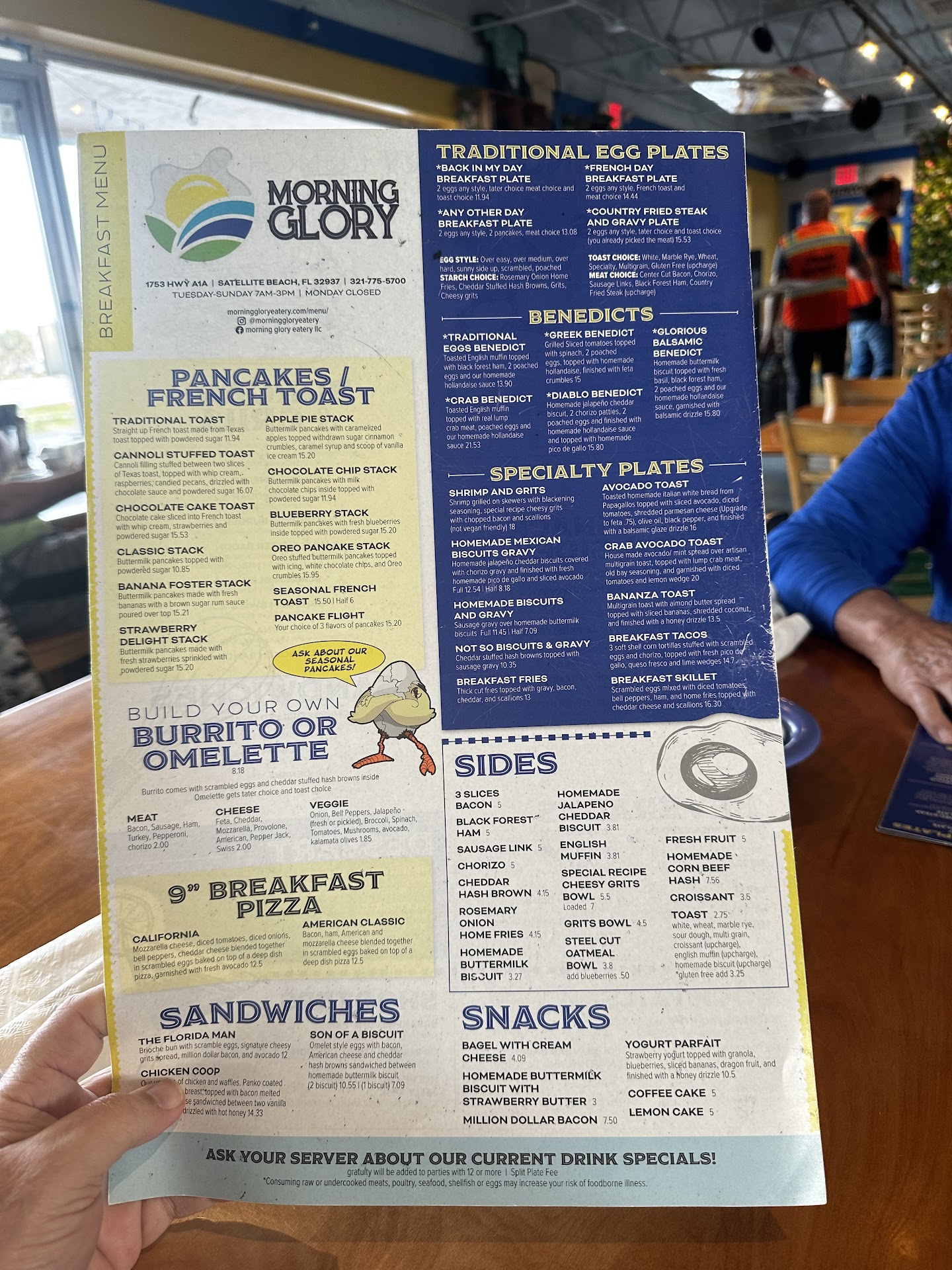 As of March 4th 2022 --- This is a Good and Bad review. The Good: Excellent food in a choice of inside or outside dining at very affordable prices. The ocean is near with a sea breeze most days making the outside dining very enjoyable. Parking is easy and a short walk. Have brought friends to this Breakfast/Lunch restaurant many times along with ourselves when in the Satellite Beach area.