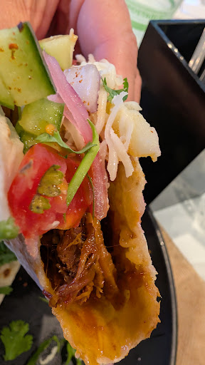 Read moreI really wanted to like this place more, as the prior reviews were great, and the overall aesthetic of a cute taco place on the water is so freaking lovely! Our party of four all ordered different tacos off the menu, and were all disappointed. All of the tacos were incredibly runny, with grease and juices leaking out and all over into giant pools. The pineapple pork taco was cut up pork sausage with pineapples, corn, cilantro, and while flavorful, was sitting on top of pool of juices. The teens in our party who normally eat anything and everything barely ate their ground beef tacos, proclaiming the taste and texture were "weird." I took a bite, and indeed it was. "Mom's ground beef" tasted like processed meat from a can. The slaw and corn sides were lovely though. Perhaps the other...