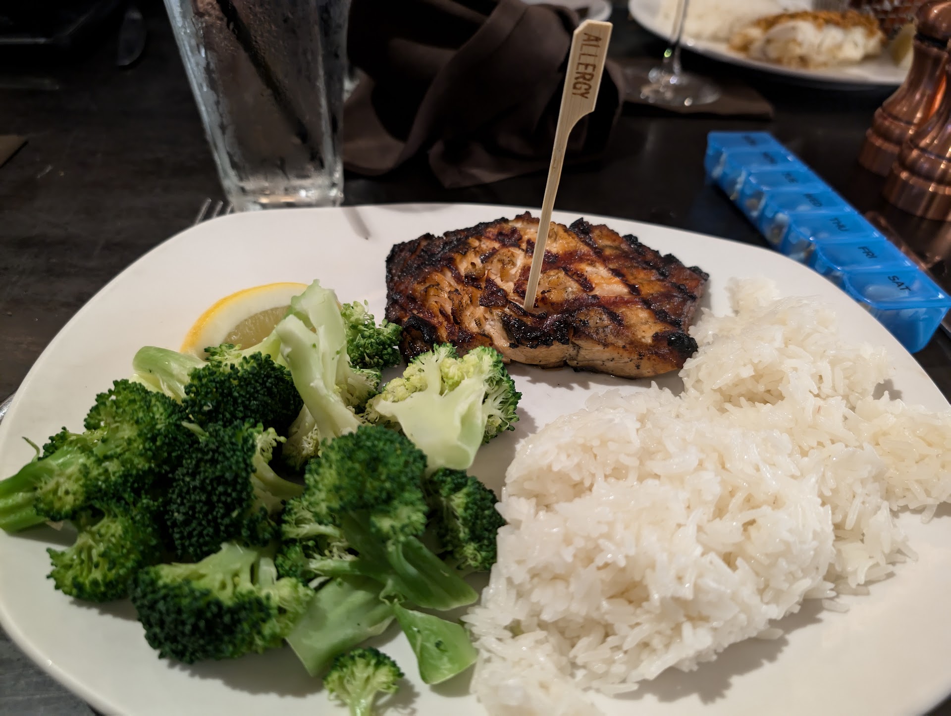Entrees arrived , Let’s Eat ! My wife enjoyed her fresh Fish & Chips! Her sister liked her Turkey Burger and fries! Such a surprise, a very good Chef special. . . Apricot Shrimp Risotto. . . Fantastic Chef! 😃👍🏼 Being a New Englander ( born in Massachusetts, lived 8 years in Maine) I had to try your Clam Chowder . Well I’m not a big fan of the THICK creamery style of chowdha, most use flour to add thickness, sadly decreases the clam flavor. I prefer the buttery broth loaded with clams, onions, potatoes, little or no bacon ( that can tilt the flavor toward the bacon).