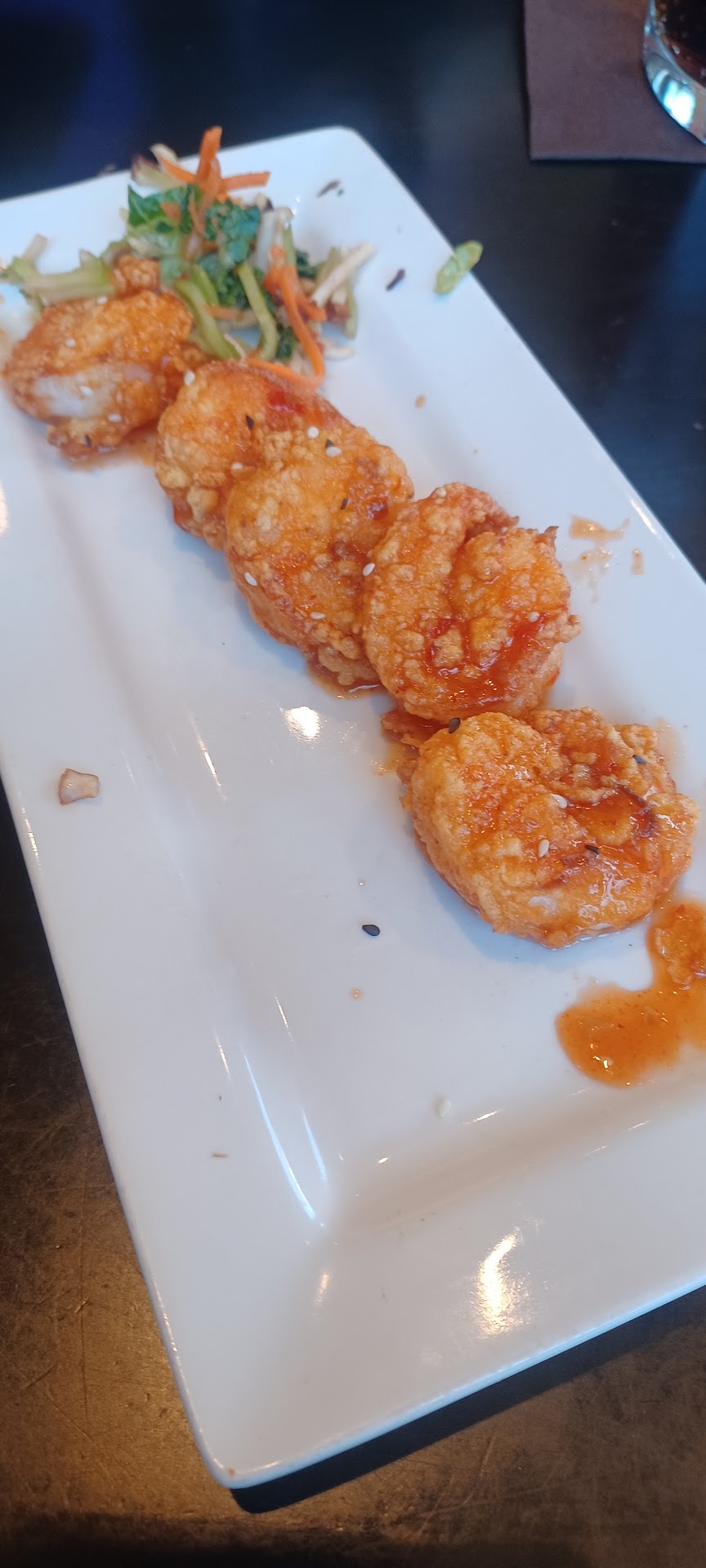 The food was not great. They were delivered by a manager and another food runner/server. The short rib and fries were not seasoned for my husband. There was no ketchup with the fries. I tried one fry and agreed they needed more salt and pepper. They were extremely bland. My husband thought the short rib was not seasoned as well. The cucumber avocado tuna was okay. Even with the sauce mixed in to the rice/tuna/cucumber/avocado it tasted bland. There was too much cucumber as well.