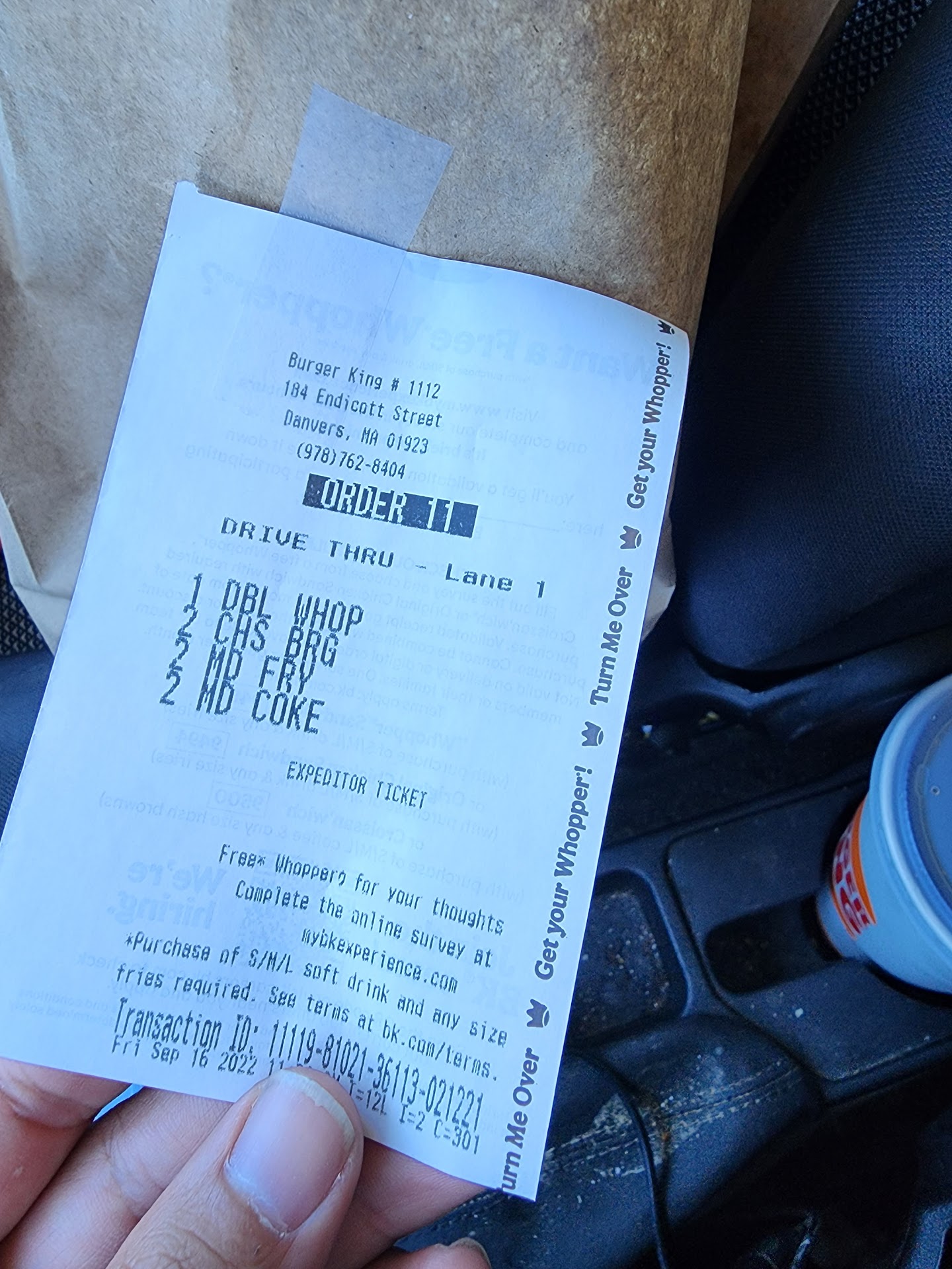 Read morethis burger king has awful customer service. we ordered online and waited inside the store, where the cashier and everyone else working did not tell us when the order was ready; in fact, they did not even begin making our order until they called out the order of another customer, and we, thinking it was our order, approached the cashier‘s register and inquired about our order. the cashier was confused and began making our order then after making us wait for 30 minutes. not only did they not apologize for the wait (hardly spoke to us at all and were extremely unhelpful and distant—the female cashier who was there when we first walked in just abruptly left with no explanation), but they also did not give us the hi-c pink lemonade drink that we ordered; they just handed us an empty cup and prompted us to fill it at the drink station, where there was no pink lemonade option present. they did not make our order until we had to ask them to. terrible service, not worth the wait; if you want a good Burger King experience, save your time and energy (and money) by going to the Burger King in Stoneham or up the street; they are both much more rich in quality, atmosphere, helpfulness, service, and integrity. we are severely appalled and disappointed with this Burger...