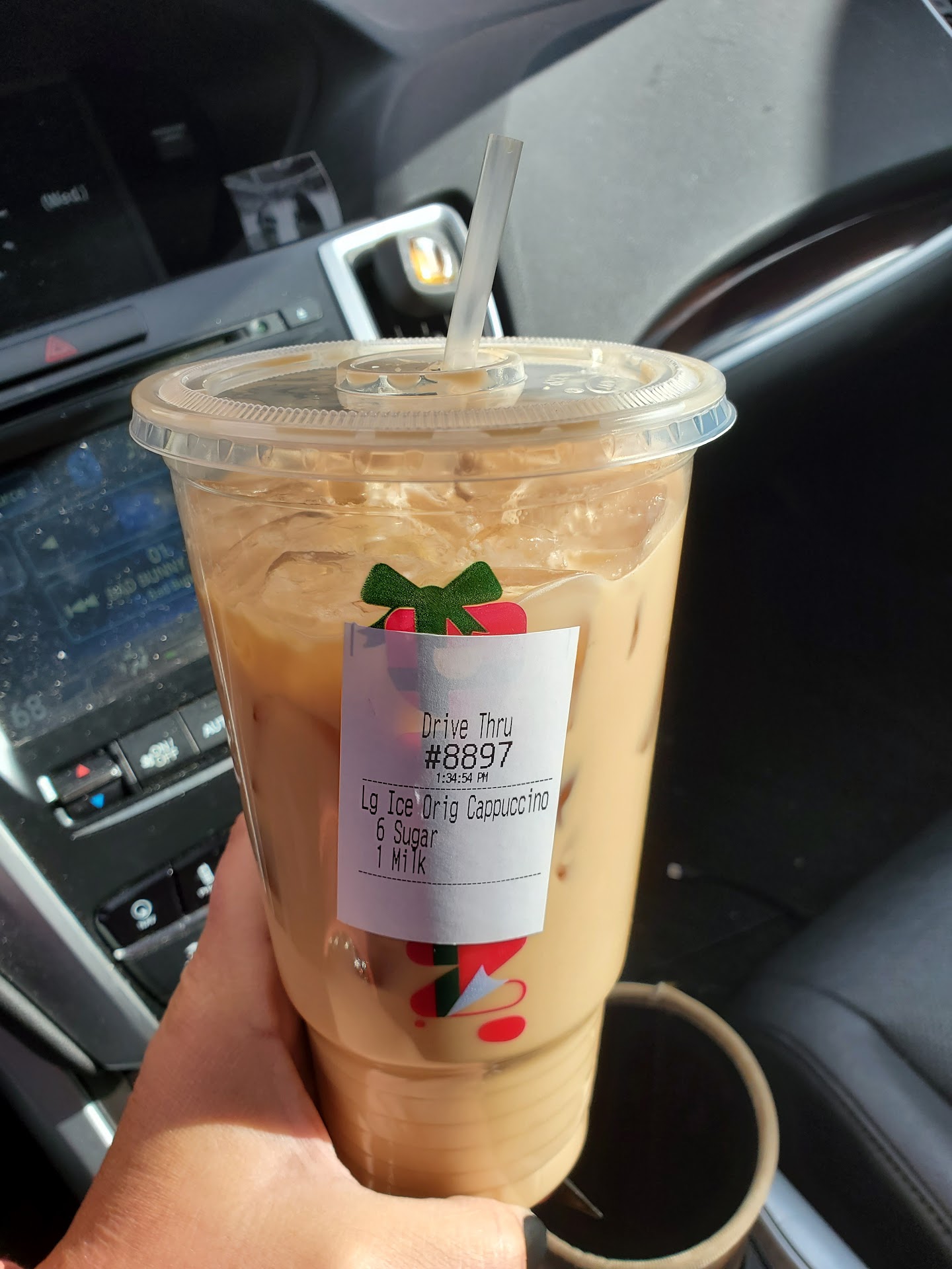 Read moreWednesday November 3, 2021 1:50pm I used to love this location but now it's a hit or miss...sometimes I get a great coffee and sometimes I don't...lately I don't. I get an iced cappuccino...its supposed to be put in the blender so the ice is crushed. I just pulled over after leaving the drive-thru to write this review...I didn't want to write this but my iced cappuccino has been wrong too many times. I asked the girl at the window to put my iced cappuccino in the blender and she argued with me that it was....clearly it wasn't because the ice isn't crushed. She didn't blend it for me. Pretty sad that your employee is arguing with a customer. I'm paying almost $5 for a large iced cappuccino...I want it made the way its SUPPOSED to be made.. I'm not asking for anything special...just the way it's supposed to be. Isn't everyone trained the same way on how to make all the different coffee and espresso drinks on your menu? ââ I attached a few pictures....those are definitely whole ice cubes! Clearly it...