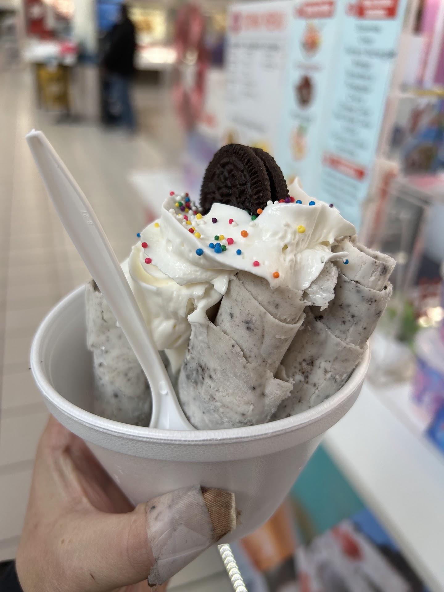 Read more$10.50 for one piece of kitcat, one mango cube, frosting and literally like two spoonfulls of ice cream. The original price was $8.50 and I asked the cashier how many toppings allowed for that price, she said two, put mango in it when I literally did not ask for mango topping but mango ice cream. Asked for cheesecake topping and there was none. The cashier was rude and impatient. Do not recommend, go to the ice cream/yogurt place...
