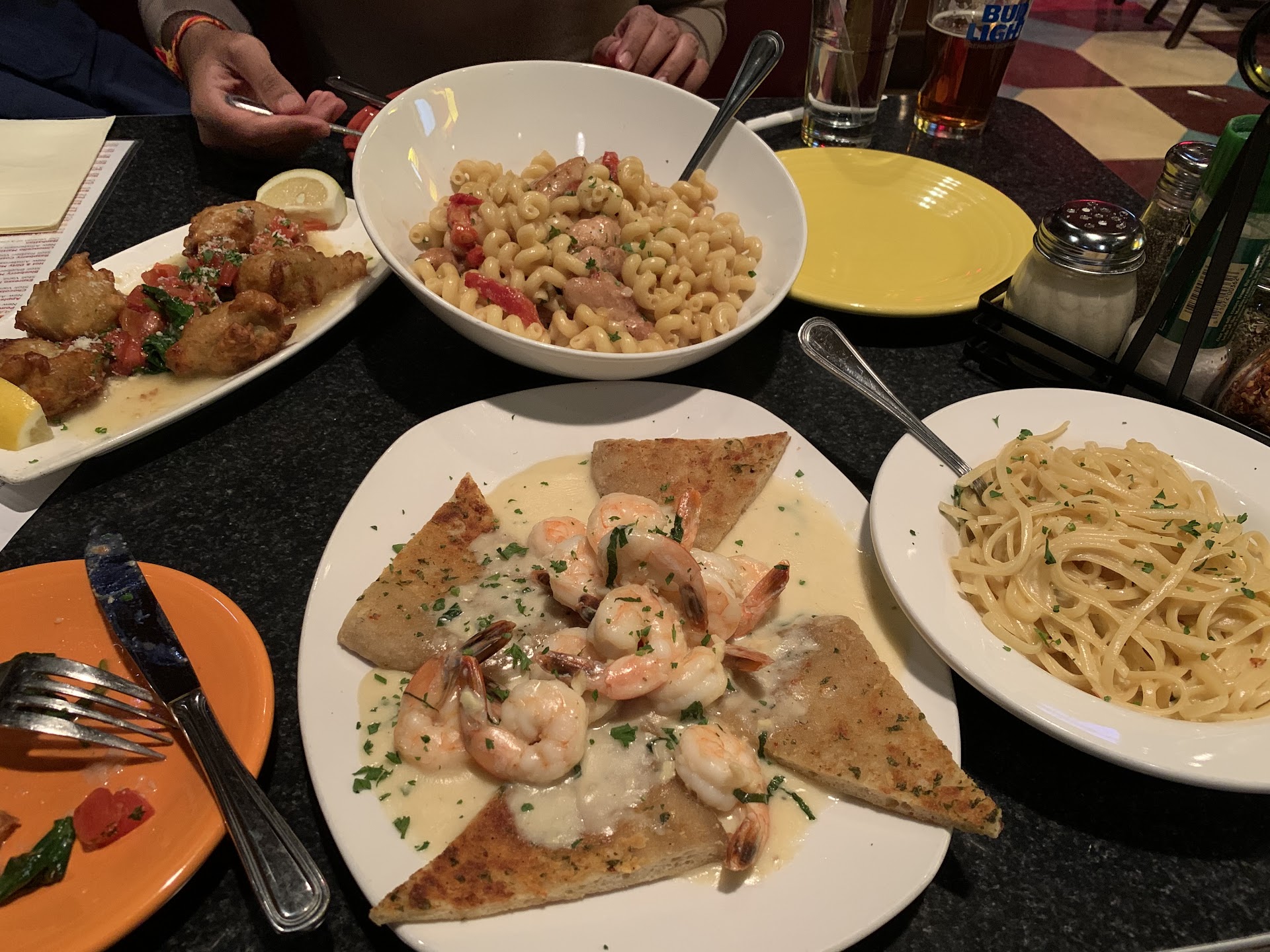 Read moreWe have driven by this place so many times coming back from Logan so we finally decided to stop. My husband said he didn’t realize they had Regina’s pizza (nostalgic memories in Boston) When we first walked in, there was a chemical smell so I am assuming they just cleaned something - but it was a little strong. We were seated pretty quickly and the hostess was very nice. The booth we were seated out had tons of crumbs on the seat so I had to wipe them off - guess kids were there before us! Our waitress seemed new. She asked us for our drinks and if we were ready to order. We were so started off with toasted ravioli, I got chicken piccata and my husband asked for chicken parm. She got a little confused and when repeating it back said “chicken Marsala” - I corrected her to chicken piccata. She then looked at my husband and said “oh you had the Marsala?” To which he had to say no chicken parm. I had about a 50/50 bet we would get what we actually ordered. Luckily, we did get what we ordered. (Would have liked to have had some bread for the table). The toasted ravioli was good. Nothing to write home about, and seemed like something frozen and heated up quickly. The chicken piccata was good and I liked that it wasn’t overly sauced but it did have a TON of capers. My husband said his parm was decent. The pasta on both of our dishes was al dente so it was nice that it wasn’t soft. Overall, the food felt like Olive Garden but slightly elevated. It was good, but nothing made us overly excited. The Manager stopped by and he was extremely friendly. I just feel like the dishes should have had a little more flair and not so basic. I know it’s just chicken and noodles, but everything felt so pre-made. The prices were good so at least I didn’t feel like I overpaid for something simplistic. I’m sure we will stop again and give it another try but it was definitely worth trying...