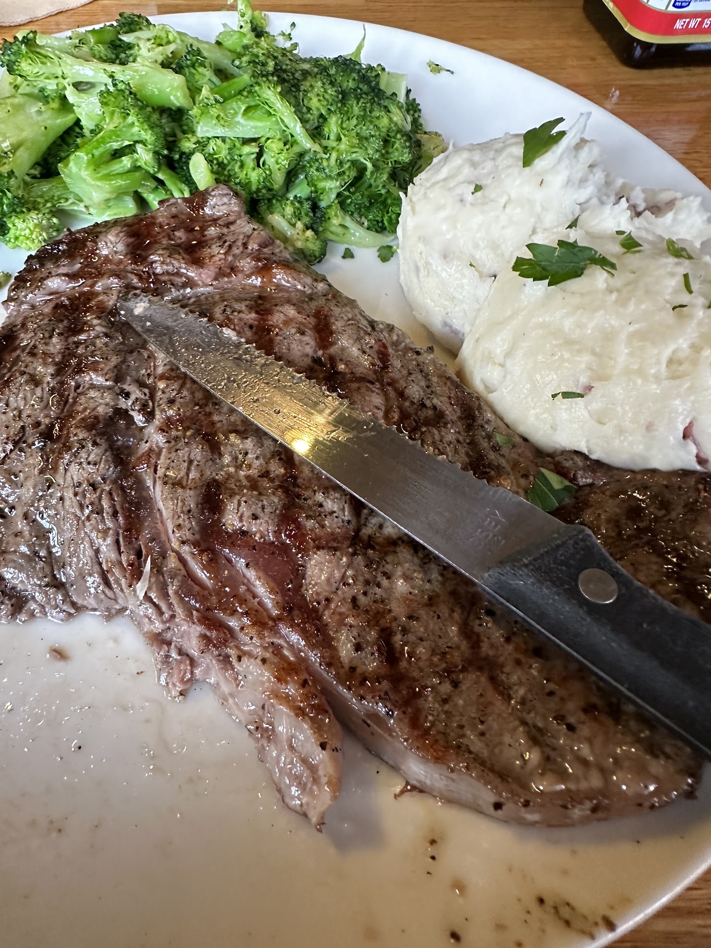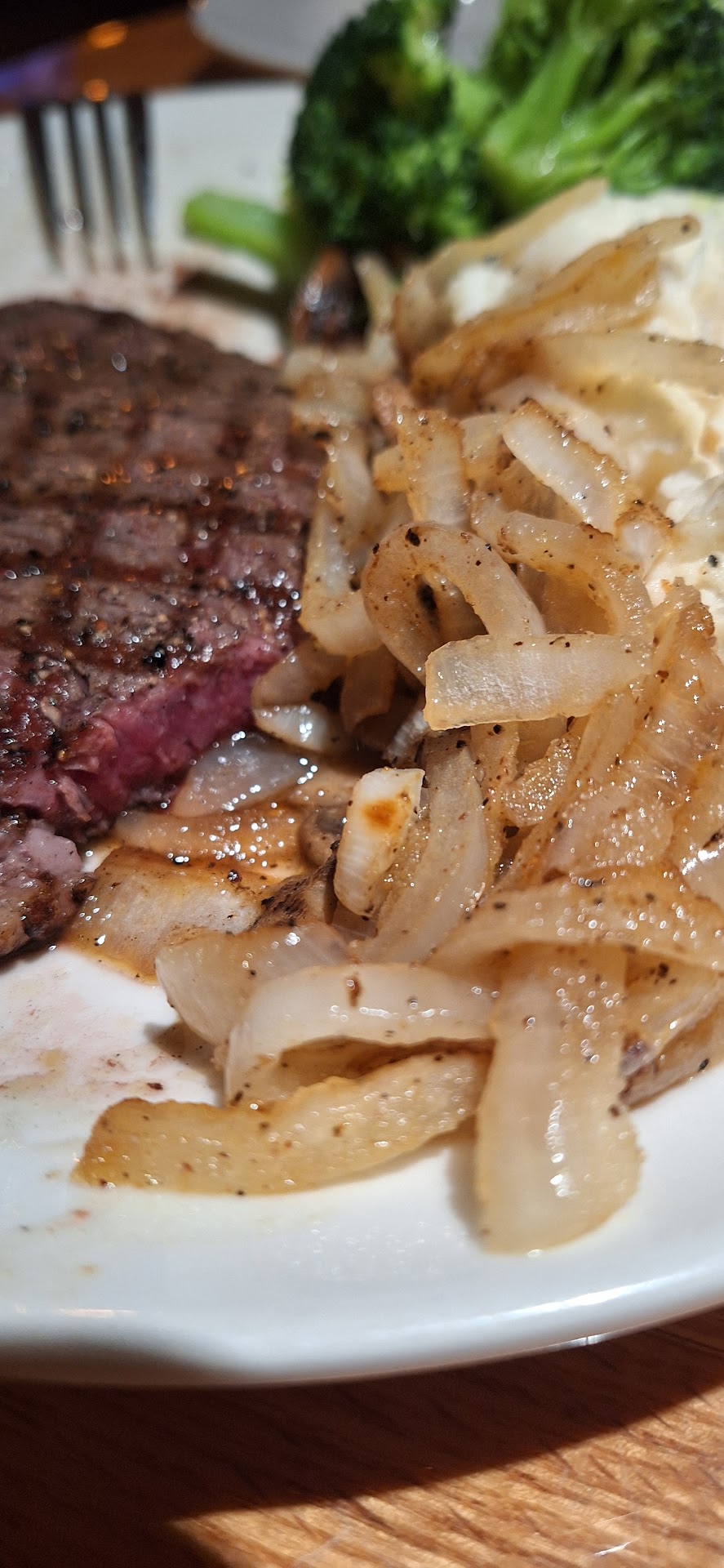 We ordered a wonton taco as an appetizer ( delicious) and we both decided on steak, which was delicious. My girlfriend's was perfectly cooked and she was quite happy with her dinner. Mine was delicious but slightly over cooked, but in all fairness, I was asked to check my steak, which I did. Where I went wrong was that I only cut into the edge and not the middle. I had wanted medium rare but got medium Instead, so it wasn't a deal breaker. I ate it all up happily.