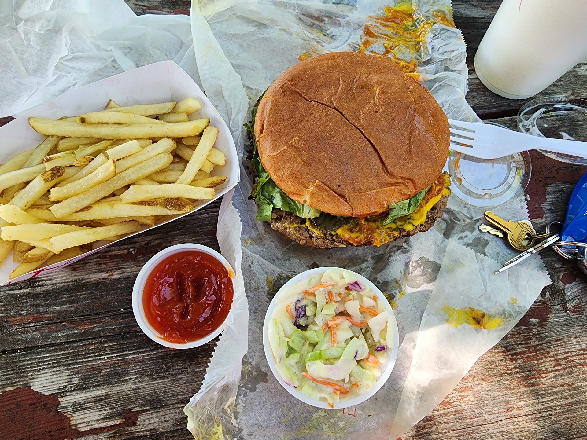 We had cheeseburgers and milkshakes. All of our burgers were amazing as usual. I can't think of a time we ever had a less then perfect food there. The shakes were delicious and the fries were hot and fresh.