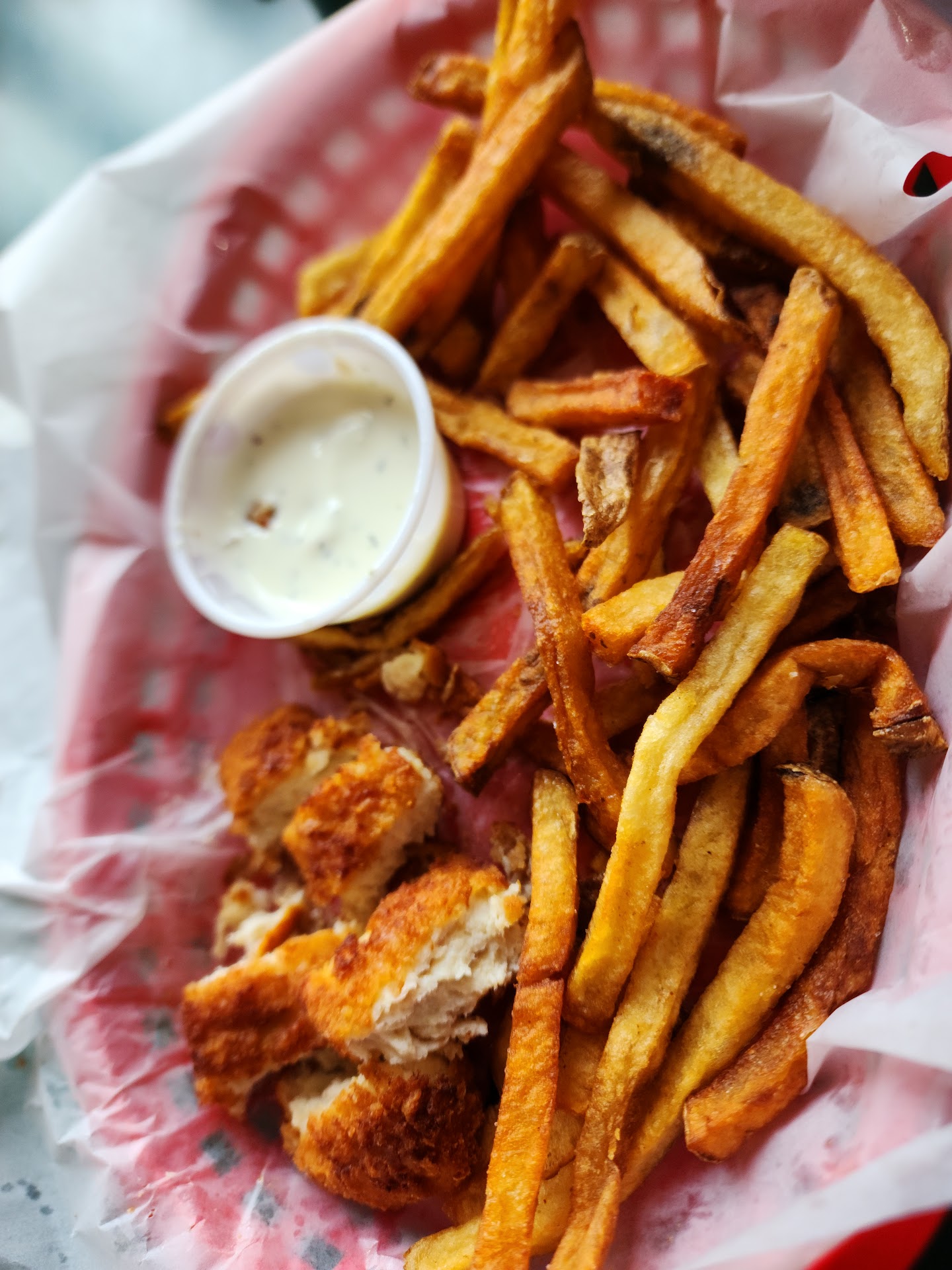My dad's fish was so greasy we took multiple napkins to squeeze the grease out... we did this multiple times and when he bit into it after words his face was still hit with a lot of grease... there was no flavor he said, just grease.