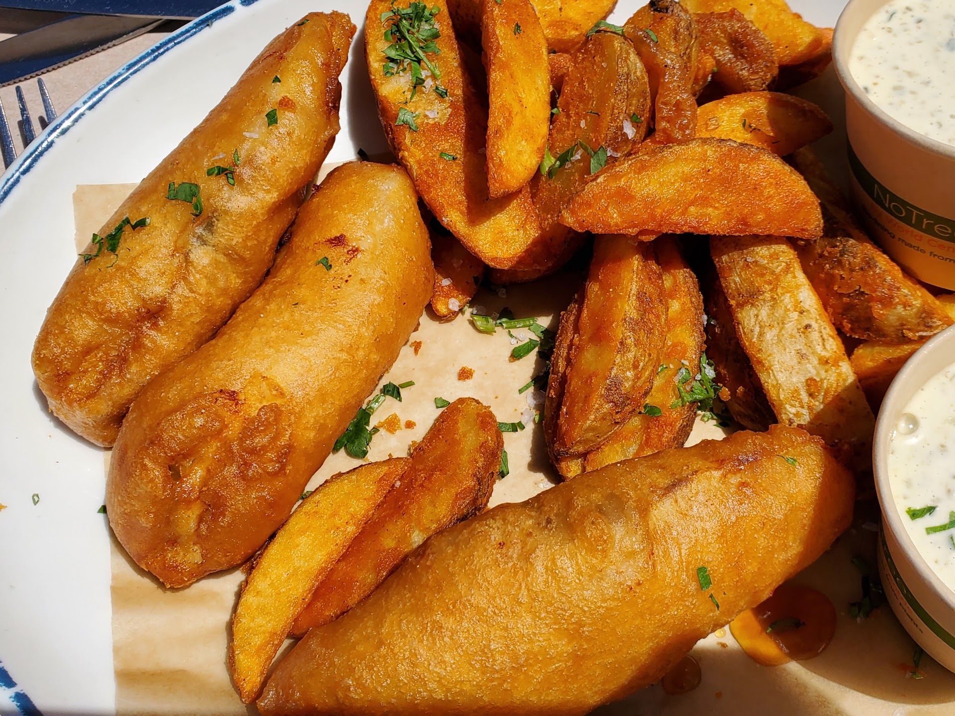 Fish n chips. It was okay. Alaskan cod with beer batter and was on the puffy oily side. I prefer my FNC to be less oily and not puffy. Flavor was ok. Tarter sauce was a 5 on my 10 scale. Fries were a 4 and were really filling but not in a good way. It wasn't bad but was not satisfying. My family owned a fish n chips in the 90s so I like to think I have a palette for it.