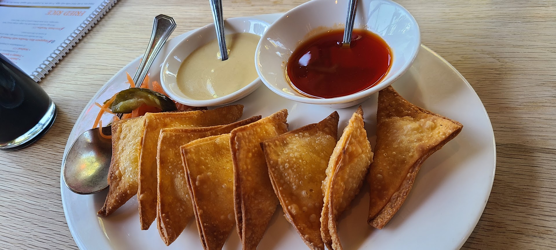My husband and I dined at Tommy's Wok on Saturday, April 16th. We travel full-time so we are always looking for fun, local, independent places to check out. We had spent a wonderful day exploring nearby Golden Gate NRA, but we had lost track of time and it was almost 3pm and we hadn't eaten anything yet that day. We were really hungry and wanted a nice meal. Since we were traveling in our RV with our pup, we called ahead to order takeout and the person I spoke to on the phone was very pleasant and efficient. We ordered the Chef's Appetizer Sampler for 2, the Prawn Lovers Duo, and the Orange Chicken. We were really pleased with the sampler for the most part: the chicken and beef satay were both excellent, the shrimp were tasty, and the crab wontons were good. We didn't feel the ribs were anything special, and my husband said the egg rolls were just okay. The orange chicken was quite good - much spicier than what we've had elsewhere. I like spicy, but it was a bit too spicy for my husband and I do think if that was the only thing I was eating it might be a bit much. I should also note that the broccoli served as a side to the orange chicken was quite cold. The Prawn Lovers Duo was really good. I loved the garlic version with the snap peas and also really liked the sweet/spicy version. We actually had a couple of leftover shrimp that I refrigerated for later and I thought they were even better cold! One thing to note: I was surprised that the rice was not included with the entrees and we ordered a small to have as a side and it was cold just like the broccoli. Overall, we enjoyed our meal very much and this is definitely a cut above your standard Chinese takeout restaurant. However, there were a few misses like the ribs, egg rolls, and cold broccoli and rice. I think our total was around $70 before tip, which is maybe a bit much for a lunch for 2 but I know we ordered more food than we normally would, but I do think at that price everything needs to be...