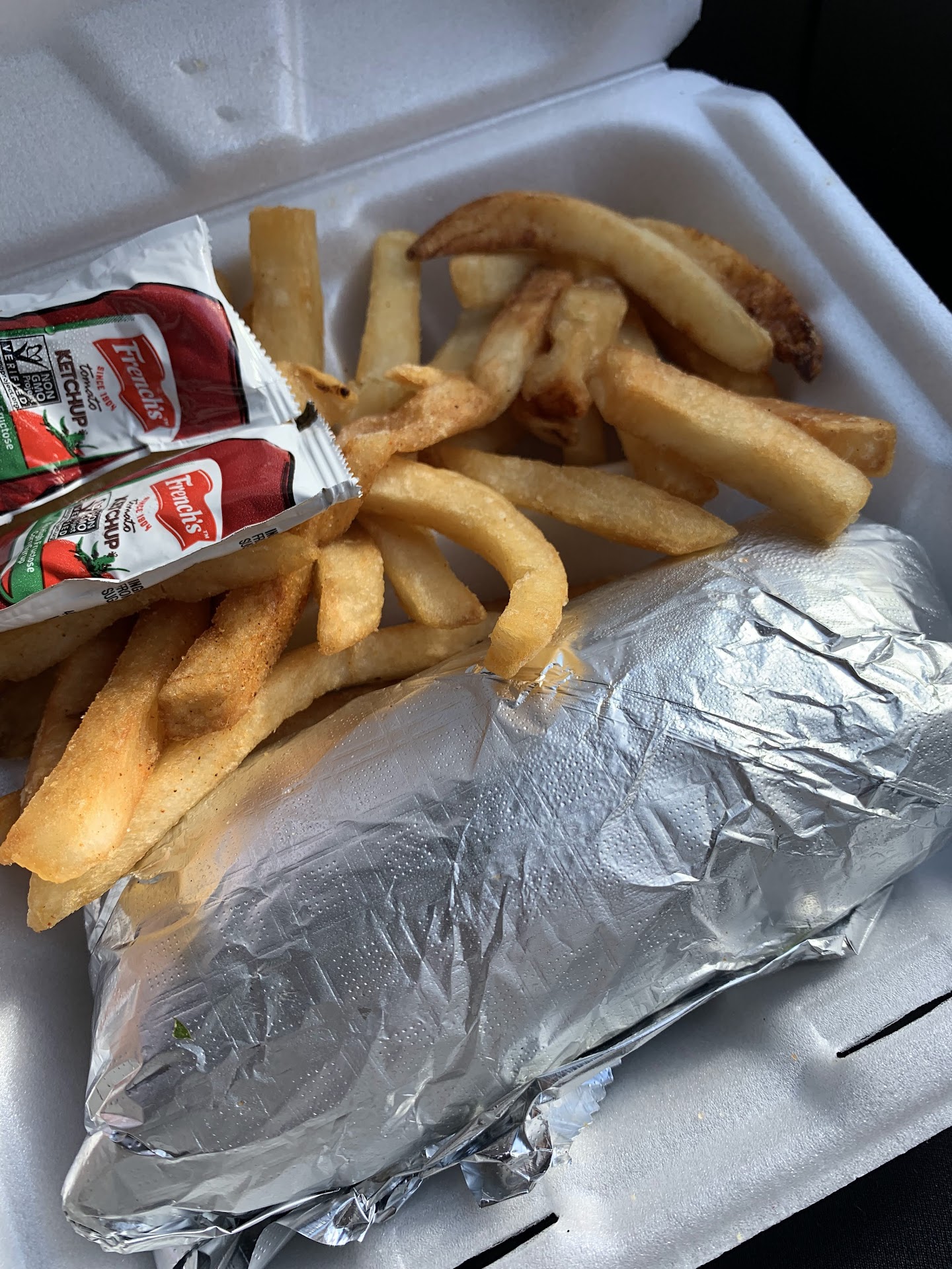 Dad quite enjoyed his Curry Wrap and fries, too! Though he failed to order spicy enough flavor (they did ask), he said it was still fantastic and we're both still stuffed.