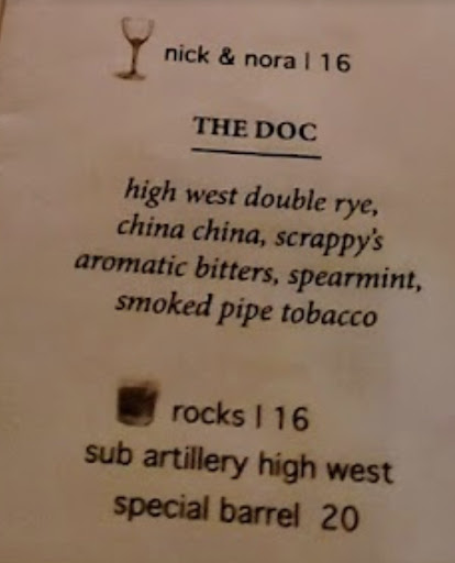A person beside me at the bar ordered this dramatic production of a drink with lit pipe tobacco and whiskey. Its presentation alone prompted me to order one for myself.