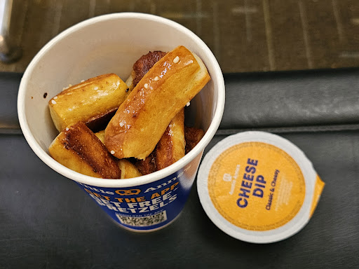 Read moreIt’s so very hard to only give Auntie Ann’s 1-star because I love the pretzel nuggets. Today they were out of cheese sauce. I stood in line for 15 minutes with 3 people in front of me. Kudos to the ONE person out front doing everything. I found that leaving unbaked items on the counter was unacceptable and unsanitary so no way would I ever order perishables from here. I chose to purchase other items elsewhere. I stayed and ordered out of pure love for the product but terribly disappointed in today’s experience. Please add additional staff to this location and stock...