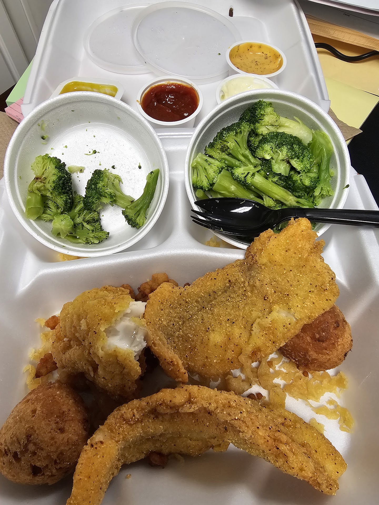 Read more4/7/2024 around 7pm. Wife ordered a three-piece fish (cole slaw and fries) and a 4-piece chicken finger (cole slaw and fries) at the drive-thru. When she received her meals, the ticket on top said a 3-piece fish and a 4-piece fish (wife doesn't eat fish). Wife went inside and the nice young man at the counter checked and the meals in the bag were correct but he couldn't figure out how to refund the difference owed back to us. Asked if he could give us a side of close slaw instead and wife accepted. Got home (food lost some of its heat during the ordeal at the store) and all three orders of cole slaw were rotten. How did they scoop those cole slaw servings and not smell that? Seriously spoiled. Threw the slaws out but it stuck up my kitchen so bad even through two trash bags and a bunch of lysol that I had to close off the kitchen for the rest of the house for the night. (Too late in evening to take the trash out to the lane and didn't want to put bag outside for critters to shred it and spread it.) The fish was good. The overpriced chicken fingers were so-so. It will be a while before we think about going there again. Just not a good experience this trip. Am I supposed to ask to smell the slaw before...