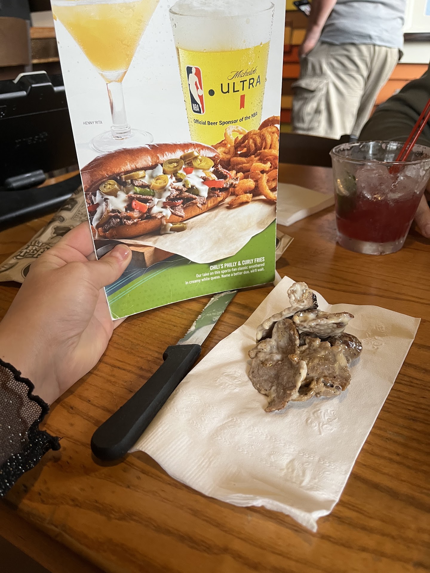 Read moreThis has to be the WORST Chili’s I have ever been to. First let’s start with when me and my husband arrived we was greeted by a representative that look like she had just woke up from a nap and was told that it was a 10-15 min wait which we were ok with. So we asked to sit at the bar area until our table was ready and was told that they didn’t have a bartender on duty @around 8:30 on a Monday evening. So my husband ordered a beer. As we were sitting at the bar I noticed that there was a girl behind the bar that was fixing a vodka and cranberry for a customer. After waiting at the bar over 20 min we asked the bartender was our table ready and she said she didn’t know we were waiting for a table and rushed and wiped one off and sat up down. I tried to order a chip and dip with my rewards but was told they didn’t have any. ( to see a another waitress bring some to someone about 20 min later) so we ordered a appetizer ,bone in buffalo wings which we got and as soon as I looked at them I knew something was wrong so me and my husband bit into one and there we go blood. I immediately called the waitress over shows her and she apologized and offered to take them off the bill (which she did). So we finally get our food after waiting more than 30 min to come and having to ask the waitress if it was ready. Get the food and it was ok but it was COLD. As we are sitting down eating i am witnessing several workers on their cellphone not working and talking to their friends while my waitress the only one who was working and waiting on over 6 tables alone. Didn’t want to make a big deal about it because it wasn’t our waitress fault she did the best she could but whoever the owner of this Chili’s is you DEFINITELY need to check on your business because these employees are not it. Also the bathrooms...