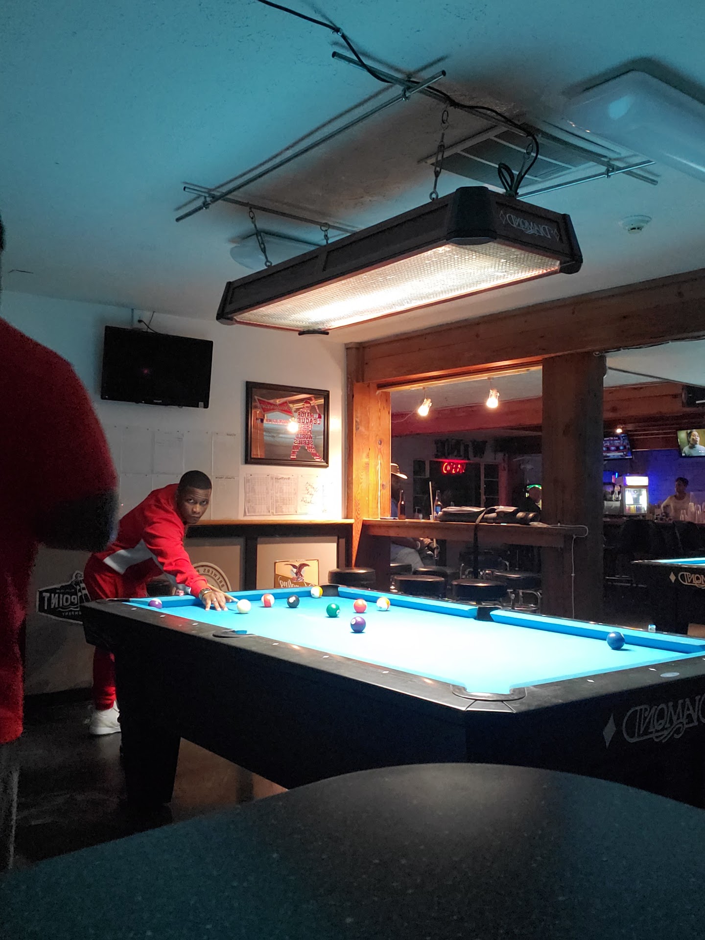 Absolutely awesome and exactly what we needed at the moment. A close knit neighborhood bar that treats everyone like a local or family. Sylvia the bartender was a gift- made good drinks, great conversationalist, read the customer well. We had just lost our cat having just left vet and wanted to tuck in somewhere close to home for a moment to catch our breaths. We couldn't have found a more perfect place and respite. We now know our Saturday date afternoon spot. Even privatized outdoor space and free pool. As an aside... We're both reformed service industry and she made a mixed drink actually properly and ghuushed in just the right way. Chefs kiss on mixology. Had good local family feel.. of downtown atmosphere without ALL the baggage and little more established finish a local establishment...