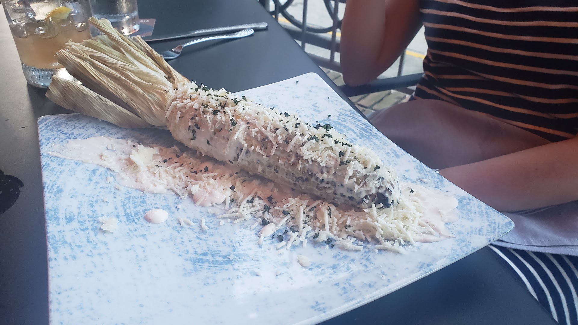 Corn on the cob: could have been hotter in temperature but the flavor combo of th cotija cheese and parmasean was very complimentary and just plain good