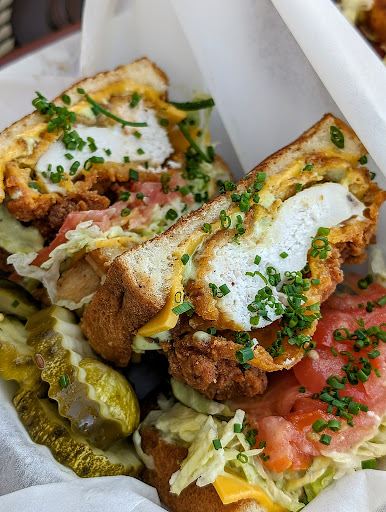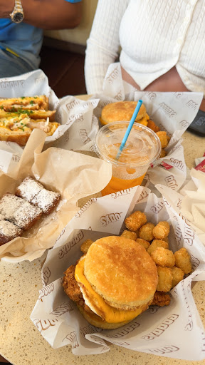 Ordered: Two breakfast sandwiches (one chicken, one sausage/egg/cheese), beignets, a Vietnamese iced coffee, and tots (not on purpose, though—see below). $41