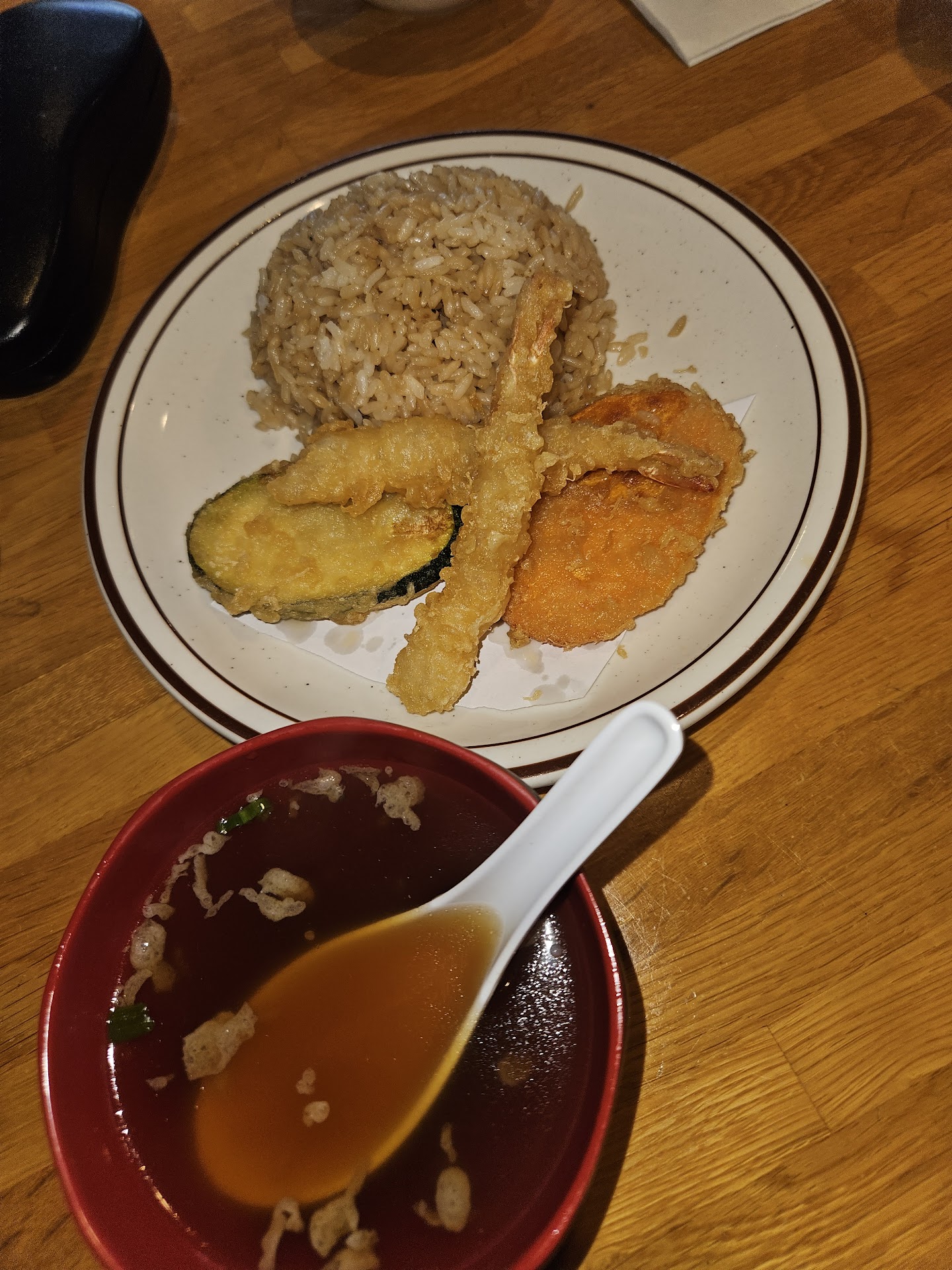 Read moreMy husband and I ordered an appetizer platter and two meals. The salads came out first, and both my husband and I immediately said the dressing looked like dog vomit, although the taste wasn't horrible. My husband's mushroom soup was just some warm beef broth. Then the main dishes came out... apparently when you order "fried rice" they just squirt some brown sauce on some steamed rice and dump on a plate. My "yakisoba" was just hard bits of chicken with some old cabbage mixed into some noodles. My husband's curry was equally unimpressive. Just as we were hoping for our check, our appetizer plate came out. Appetizers weren't too bad, but by this point we weren't feeling too confident about seafood from this place. Had to stop someone to get them to take our check. Worst service and worst food I've ever had, simtaneously. Please don't go there. I promise you I...