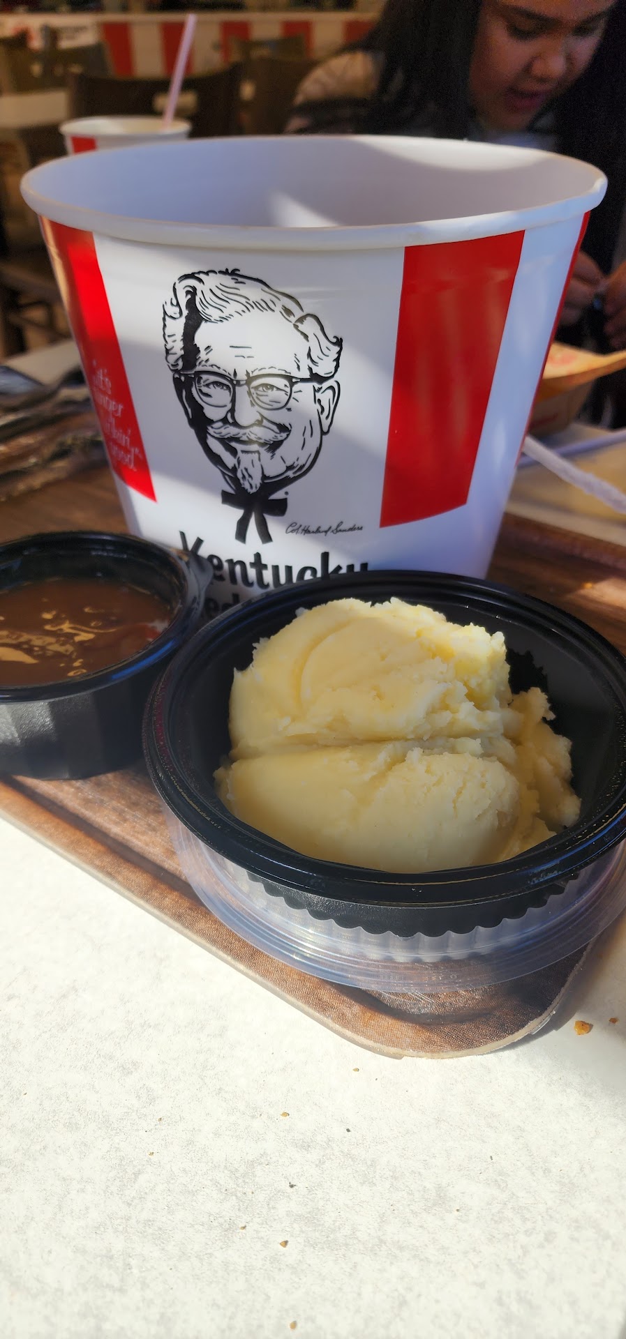 Drive through person was extremely rude. We waited in a long line got our food and saw they didnât give us a fork which we need to eat green beans and cole slaw! We tried to open the door but they were locked. We got back in the long line, made it to the ordering window and I kindly asked her if she could send someone to the door so we didnât have to wait in the long lines again. She got mad and said âcan you just wait in the line we are busy here!â We waited in the long line AGAIN get to the window and she looks at us and said âwhat you forgot something?â You will NeVER compete with chick fil a with people like that at your...