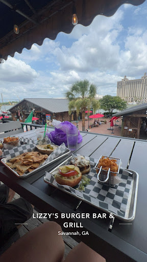 Read moreWe decided to stop in to have frozen margaritas because of the hot weather, I've been eyeing Lizzy's Burgers for a while now. I'm sure glad we stopped in because now it's one of our favorite places. We can sit and watch the games while enjoying some great food and margaritas. I have had the frozen watermelon margarita, the peach pineapple margarita, and the strawberry margarita. I must say they are absolutely delicious, not to mention that the alcohol vs. mixer is the perfect combination. These are great refreshers. The burgers are a must!!! I had the Mushroom Swiss Burger with fried okra as a side. The burger had so much flavor, and the quality of the beef made a big difference in the texture and flavor. I must say this is one of the best burgers I've had. My boyfriend tried the Smash Burger, and it was so damn good. I don't know which I liked better but I know that it just means I will have to go and eat them all. The fried okra was really good and fresh. My boyfriend had the fried onion rings, and they are cut and fried to prefecture perfection. They are a good quality onion. I must say that this place has character, a great atmosphere and delicious food and drinks. You've got to try it whether you're from here or visiting savannah. I would like to thank Charity and Candace for the perfect service to go along with the perfect everything....