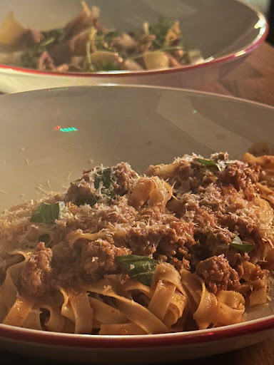 What the menu promised: Campanelle, 'Nduja, Calabrian Chili, Passata & Crispy Shallot