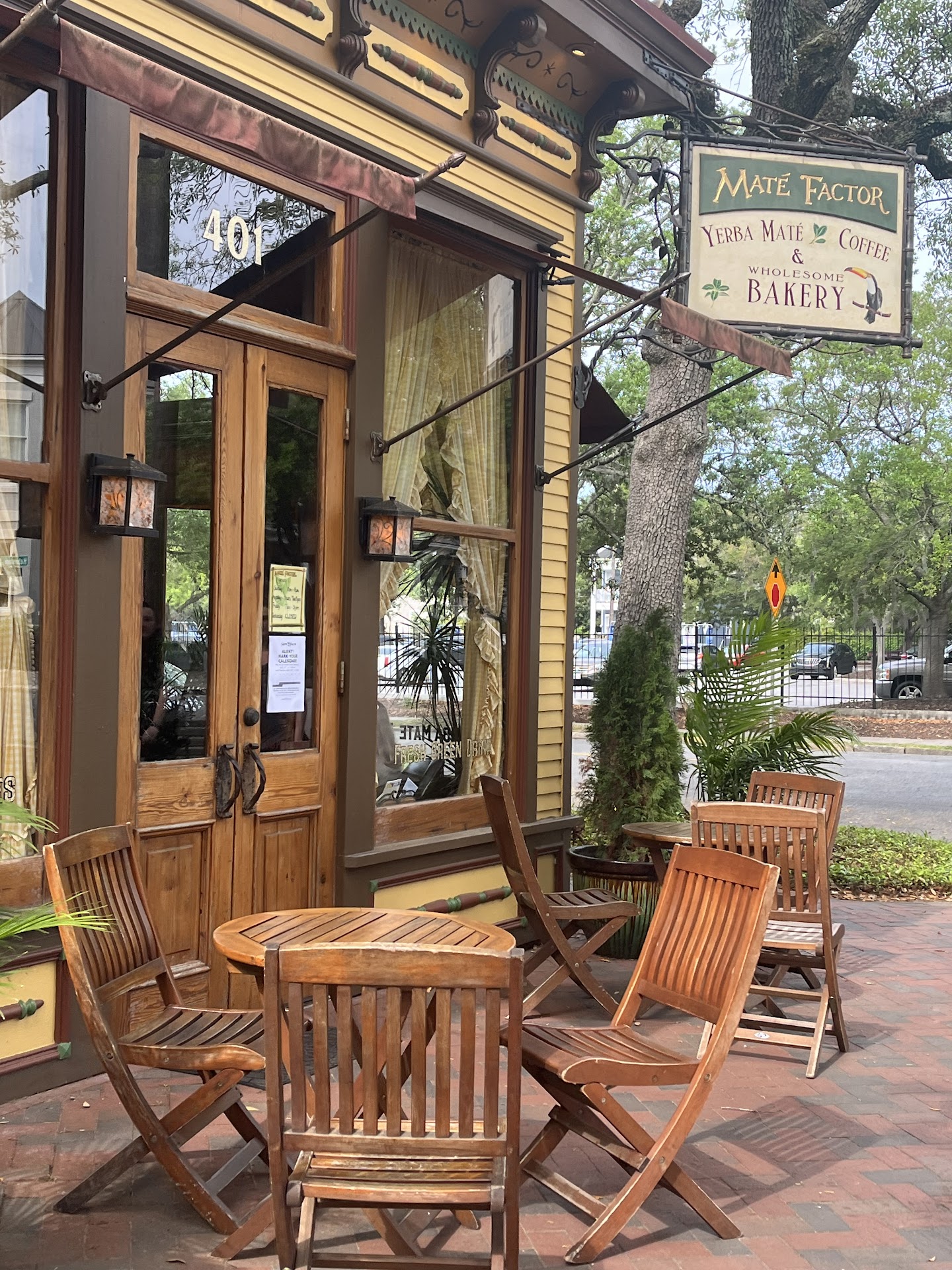 Me and my family last week were visiting Savannah and decided to go for breakfast and came across this café. Beautiful peaceful place I love how the inside and outside was designed but there are some pros and cons to eating at this restaurant. Two cons the inside is very small becomes a bit claustrophobic when business is slamming. Also outside in the back seating area they have this beautiful view of flowers and trees but the over head is not covered up to protect particles from falling into your drink and food. I had a cup of water that was given to me without a lid and couldn’t drink it because leafs and pieces of the tree fell into my water and later saw a twig in my plate after eating not sure if I ate other particles that came from nature in my food but me being a plant-based eater I didn’t mind, but my mother and grandmother are not fans and was very paranoid. Specially, when the squirrel was running through the tree and things were falling on the table. The pros about this restaurant is the customer service is amazing. Very nice lady that took our order. Even tried to give suggestions for drinks I really appreciated her help. Also can’t forget the most important. The food is also amazing. I decided to get the veggie burger, which everybody that walked past my table said that it looked very good. Can’t argue with them. It look good and taste even better. My mother decided to get the Spinwish Breakfast Sandwich and Vanilla Hazelnut Latte Coffee she absolutely enjoyed it, and my grandmother got the Egg & Cheese Breakfast Sandwich which she enjoyed. Whenever I come back to Savannah I would happily come back to this place for the veggie burger, I will just sit inside rather than outside if they don’t decide to change the back seating area a little bit. I would also hope they have more options for planet Based/ vegan eaters I would have loved to try some of their bakery choices. But overall Great...