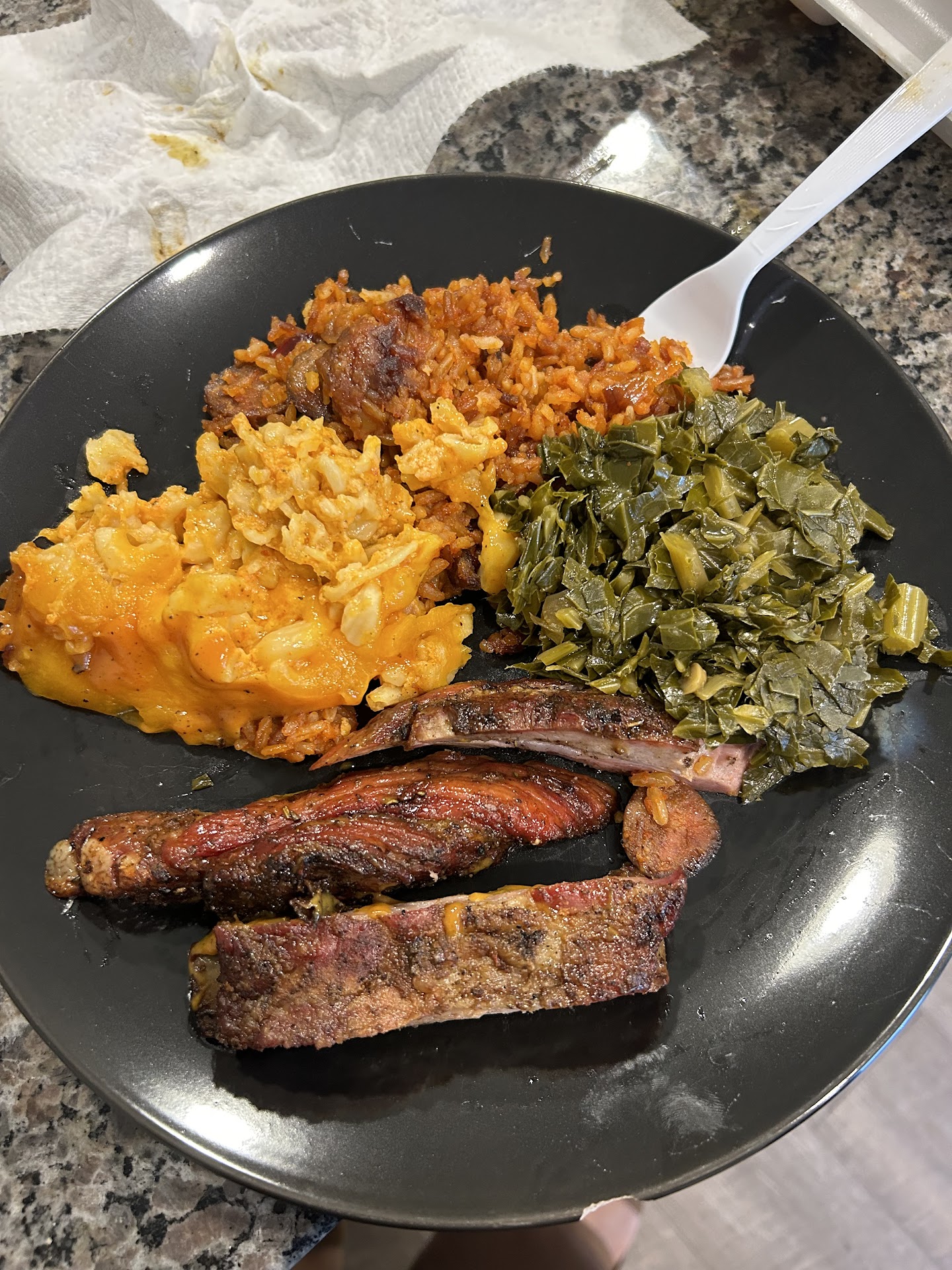 WHEEEW CHILE! WHERE DO I BEGIN? First let me start by saying we actually had not planned on coming to this restaurant. We went to another Soul Food restaurant but after entering and seeing that there was not a melanin person behind the counter talking bout, "this protein and that protein" we exited. So we came here to Munchies. We were able to find street parking easily without no problems but before you get to the restaurant you smell the aroma of juicy fat and flavor on a smoker a mile away. When I walked in it reminded me of my great Aunt's house during a family event. Pleasant conversations, laughter, delightful aromas of food and Whitney Houston on the TV. I was greeted by a friendly lady who thanked me warmly for joining and patiently waiting while she handled another hungry belly. We ordered the rib and chicken combo with red rice and sausage, Mac n cheese, and lemonade tea mix. Also, oxtail with red rice and sausage, collard greens, Mac and cheese, deviled crab and another mix. I decided to get back in line to get a side of potato salad, cause it looked so good. It was actually calling me y'all. Let me tell y'all something THIS IS THE BEST BBQ NEAR AND FAR! EVERYTHING WAS GOOD. NO SERIOUSLY EVERYTHING AND THE RED RICE AND SAUSAGE I HAD NEVER HEARD OF BEFORE BUT ON THIS DAY. THIS DAY, TODAY NO RICE WILL EVER, NEVER COMPARE. Ribs, chicken, and oxtail seasoned DELICIOUSLY AND COOKED TO PERFECTION, Mac and cheese was good, not as gooey cheesey as I like but still flavorful and good.