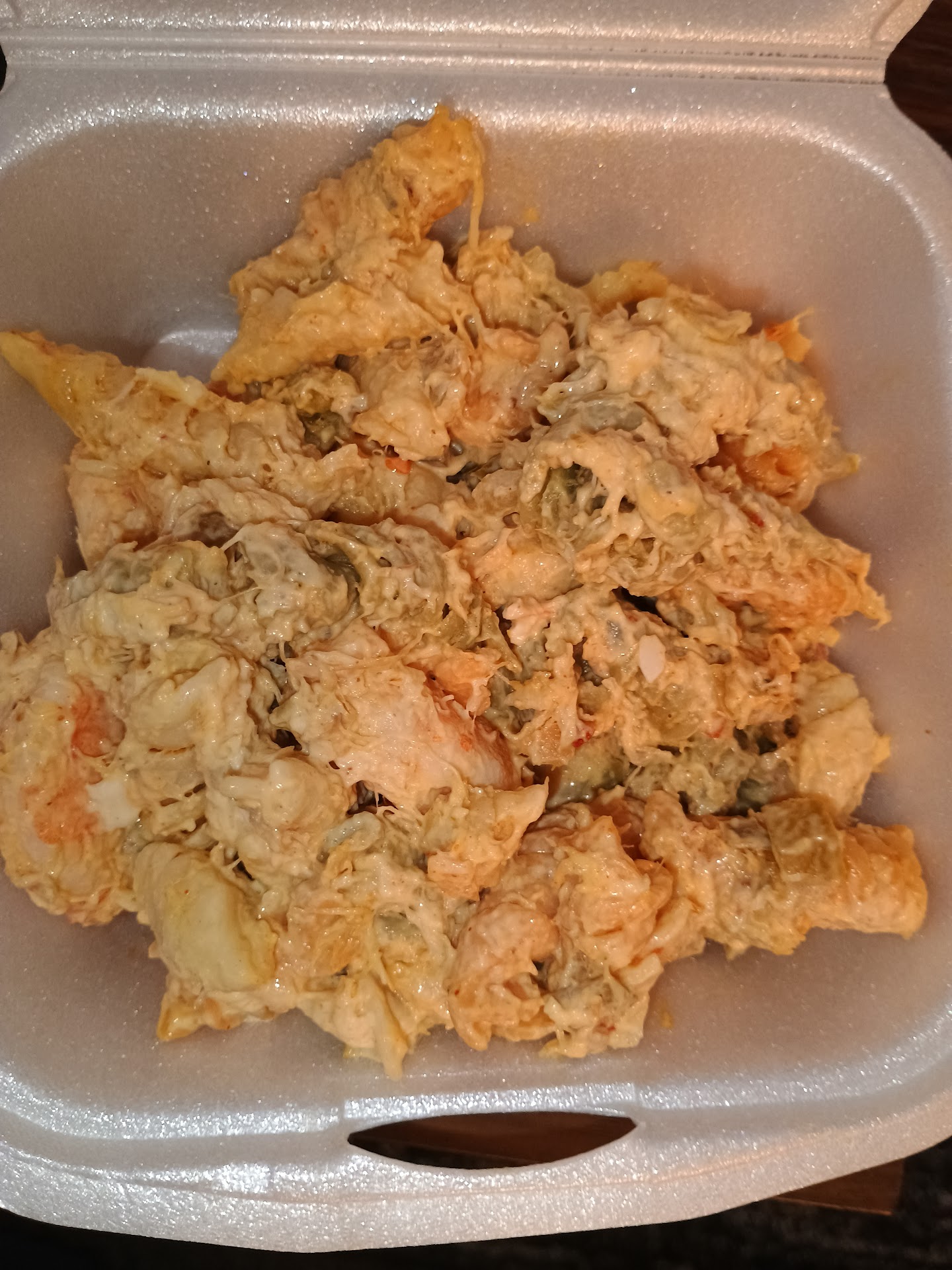 We got Rib dinner: comes with four pieces of ribs and tips, a slide of bread and shrimp ๐ฆ salad. The rib is right enough spice, no sauce. it's a bit chewy. A chicken snack comes with three pieces of chicken legs, toss salad and a slice of bread ๐. The chicken is blackened and a bit dried. Overall flavorful. Not much service, but they'll nice and inform. The Red Velvet ๐ฐ cake is very...