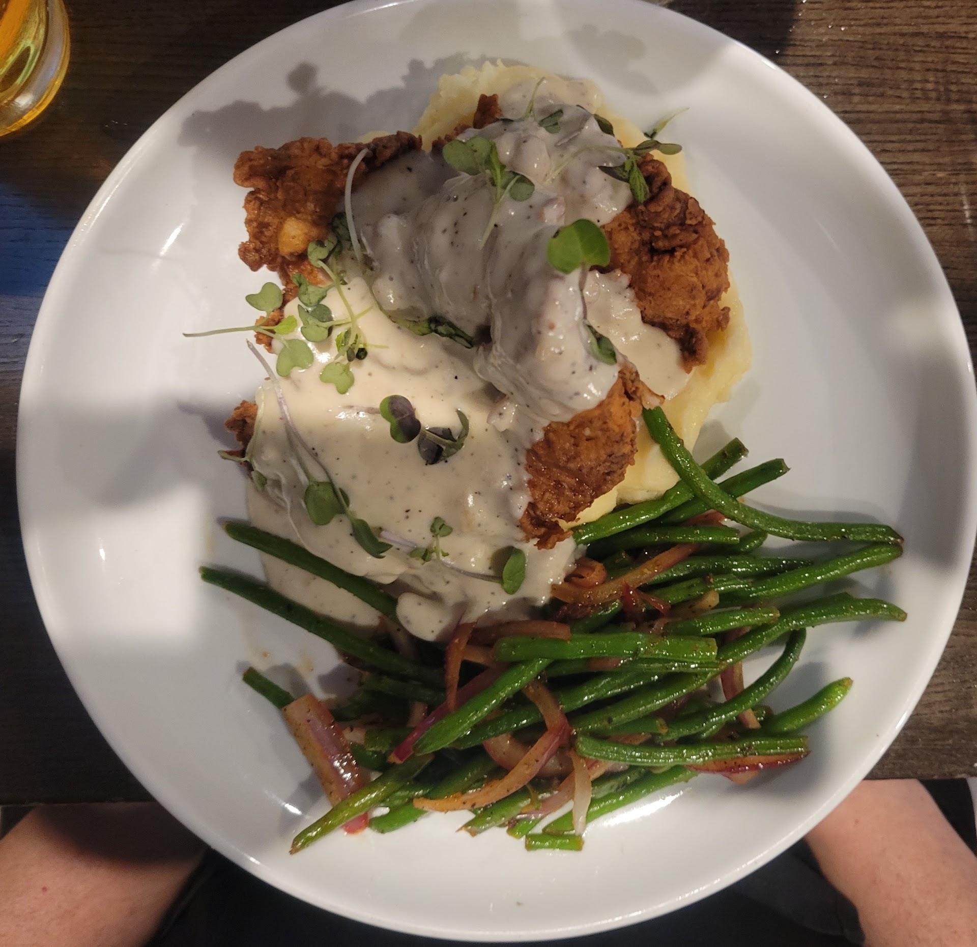 For my main dish, I was very intrigued by Haillie's recommendation of the Chicken Fried Chicken, but ultimately decided on the Shrimp Scampi Radiatori for something a little on the lighter side. I have to admit, I was a bit skeptical at first as I've had lackluster scampi dishes in the past, but this dish was delightful. The local shrimp was cooked to perfection, with a succulent texture and savory flavor. The garlic, lemon, and herb butter added a light depth of flavor that made each bite a delicious.