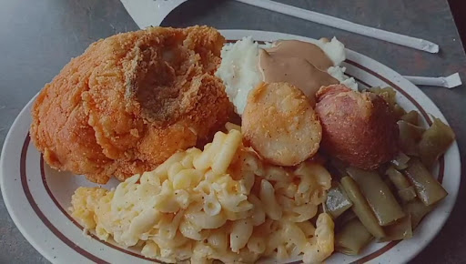I visited this place for dinner which I guess started at 5pm since I was charged a dinner rate.. adults are $14+tax with no drink..and kids $8.99+tax without drink. The price was a bit steep for me and the food was not that great. My kid got an upset stomach maybe within 10 minutes of eating mac and cheese, there was a horrendous smell (like old garbage) near the back station mid dining area that floated over most of the tables there 🤢, almost did not stay. The variety of food was condusive to a Sunday meal. The collard greens were bitter like vinegar which is not my taste, I only mention it because that taste stood out, not in a good way. I enjoyed the fried fish, shrimp, and some type of chicken gumbo, and the salad. Omg if you guys want people to eat here, improve cleaniness & smells, along with maybe some more updated food choices..maybe a co-chef if its feesible.. the flavor for most of the food was not familiar to a southern flavor. The dishes were in an area also not familiar and I was not the only one walking in circles to find them. On a good note, I did see consistant change in the food trays as well as wiping around the food station and redirecting of filthy people who cross contaminated serving utensils.. 😒, but like I said, the kicthen worker had no problem redirecting them and removing said utensil. I don't visit often and the above issues are why, improve those and I may recommend the place, but not...