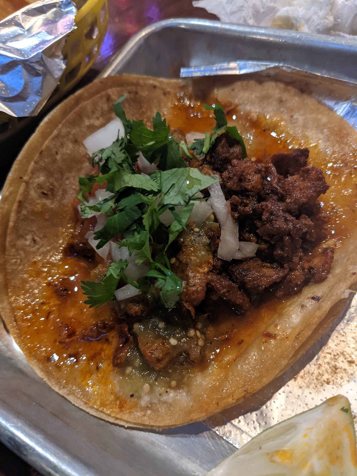 Read moreThe food is five star. The late night menu offers enough choices to make a good meal. If you are rolling into the city as a late night tourist arriving lost and hungry, forget finding a clean relatively safe open still serving option anywhere else. The late night menu is served togo from a walk up bar and there are tables inside and out to sit and eat at. We got there around 1030pm after hoofing it to four other ‘recommended’ spots for a late nite bite that all fell short, already stopped serving and were very dimly lit bar crowd atmospheres. this restaurant orale tacos has little understanding of the valuable service they are providing this town by staying open serving food late in a well staffed well lit clean establishment with seating. The staff unfortunately starts to put chairs away and dimmed the lights a bit around 11pm even though they claim that they are open till 4am. Bad move. They should turn the lights brighter and promote food only service after midnight. It seemed more like they are trying to hide the fact that they are serving so to keep the drunk vagrants from swarming the bar. Thankfully while they do serve, this doesnt come off as the kind of place for pounding them down. Be sure to try the chicken burrito ‘american style’ and the chicken nacho ‘orale’ style (mild creamy white cheese sauce with sliced jalapeños..) the sauce is delicious! Also a great thing about this place is that it doesNOT stink likepiss or cigarettes like some other places. Their staff is nice and friendly and helpful after you start chatting them up after you have already placed your order so long as they are not super busy. If you are looking for a warm howdy and welcome at the door, this isnt that kind of place. They need to realize that their customers can very well be tourists uninformed about their options and at least paste a menu at the front window. March 12,2020 would i eat here...