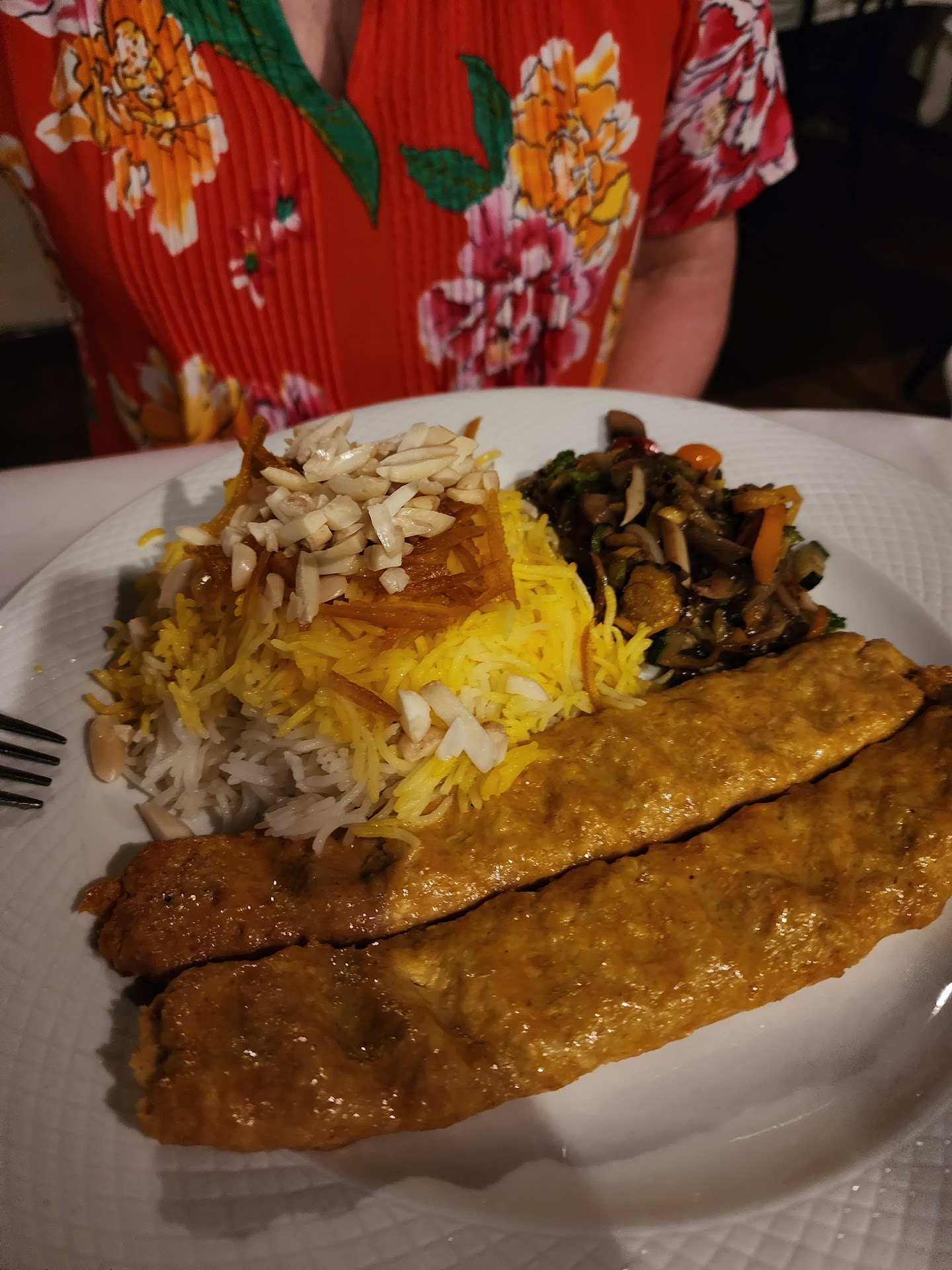 Read moreOkay....so this is a 5 star hidden amongst the downtown tourist restaurants! Ali, the owner, believes in a dining experience, so don't go here if you want fast food. Go here if you want great food! A small, cozy, and unassuming restaurant, you've likely walked by in one of the busiest spots on Whitaker Street. We started with a four plate sampler of dolmeh, hummus, babaganesh, spanakopitakia, served with pita bread, freaking amazing! Our friend who had never had most of these dishes loved them. Spiced just right with savory favors but made fresh with a hint of lemon. I had the amazing chicken kabob. Ali told me he marinated the chicken in milk and spices. It melted in my mouth. The rice is its own special treat, made with honey, almonds, and saffron. It was a second star of my dish. We also loved the Moussaka, Pastitsio, and the Chiken Koobideh kabob. I tried my friends order of the chicken Koobideh kabobs and liked my chicken kabobs better. Marinated as opposed to ground, but just my preference. We paired it all with a Greek white wine and finished with a Turkish coffee. It was a great dining experience I would put against the much higher priced, high-end hotel restaurants of Savannah. Would I go back?!? See you...