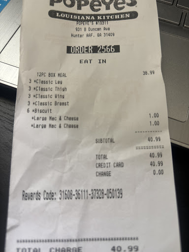First of all, the menu at Popeyes is absolutely incredible. From their signature fried chicken to their buttery biscuits and flavorful sides like red beans and rice and mashed potatoes, everything is cooked to perfection and bursting with flavor. The chicken is always crispy on the outside and juicy on the inside, and the seasoning is just right - not too spicy, but with enough kick to keep things interesting.