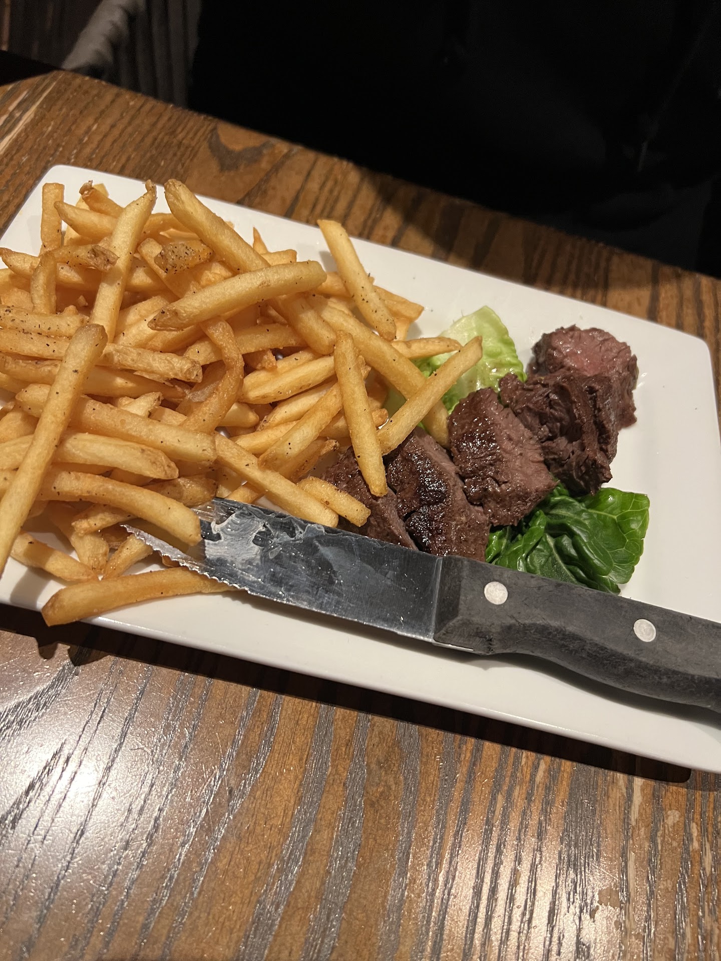 Read moreFor this to be where we celebrated our 5 year anniversary I must say it was very disappointing. We had reservations at 7:00pm, when we arrived we stood waiting for about 5-7 minutes until someone came and told us that it was self seating. We sat down, the table was dirty and no one came to the table for about 10-15 minutes. There wasn’t a lot of people there at all, however they were very short staffed. I believe I seen 2 people behind the bar, and 2 servers on the floor. Finally a server came to the table and brought us some water and menus. The menu had a very small selection (all appetizers). No one else came for 37 minutes. We finally placed our drink orders and my husband ordered beer which came in a dirty cup, and I was brought the wrong drink altogether. 20 minutes later the manager came and took our order. We inquired why the menu was different from what we seen online, and was told that they are under renovation and this is the only food they are serving. I ordered the smash burger and my husband ordered steak frites. (Please see pictures). Our food came out 30-35 minutes later the fries were cold, and the smash burger was in no form a “smash burger” it looked more like a slider. My husband had the smallest piece of steak that I’ve ever seen. I’m not sure what cut that was but it was cut into 4 very small pieces. He said the taste of the steak was indescribable but not in a good way. Not to mention we never received any utensils and napkins until we asked. This is comparable to a sports bar with no tv’s. This was not how I planned to spend my Anniversary/Valentine’s Day. Also the valet service was $24.00 however when we left she just gave us our keys and pointed to the car. I must of gotten the meaning of valet service confused. I must add our meal was comp’d due to the service by the manager. So we got free fries beings that is all we were...