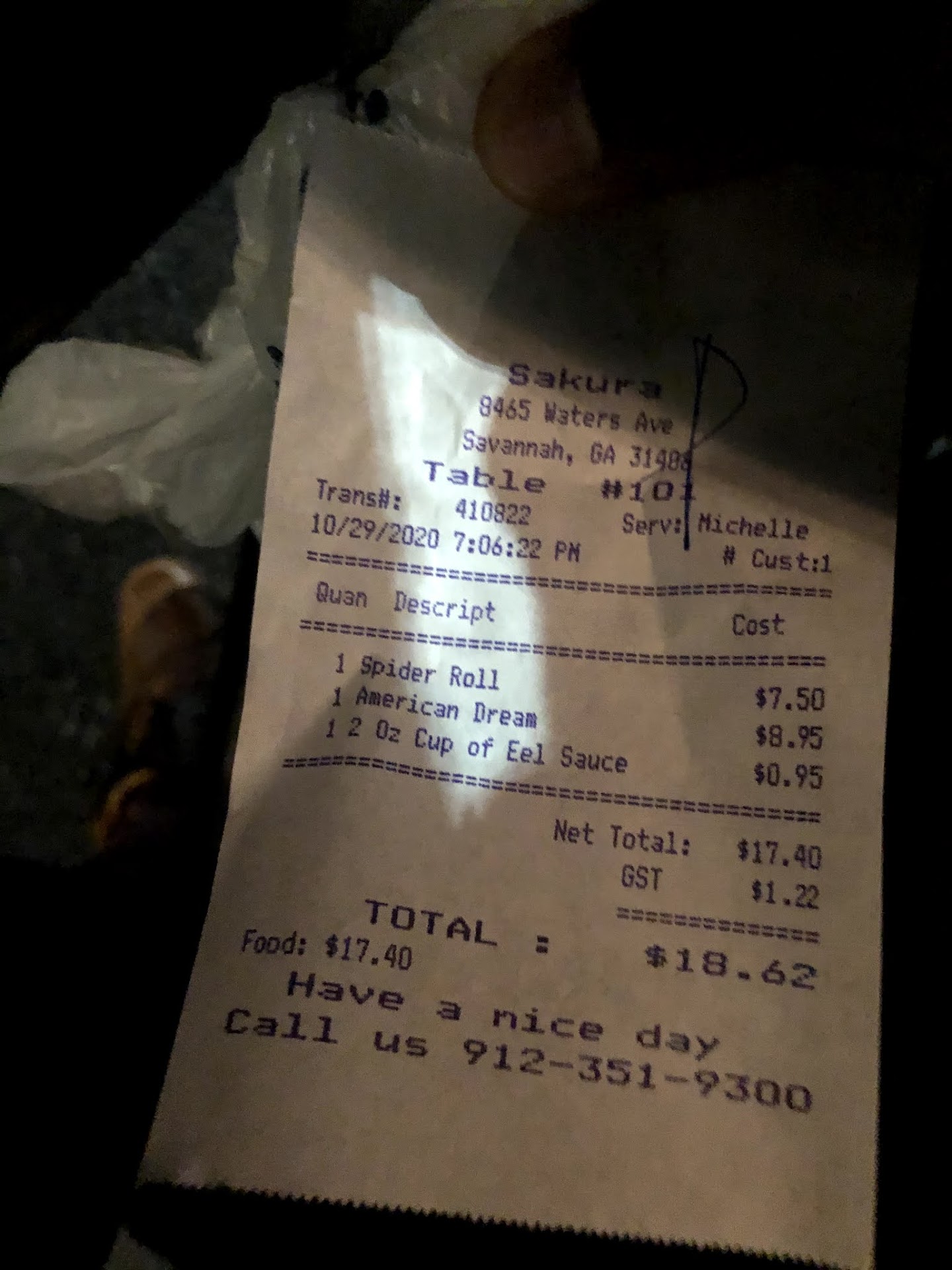 Read moreMy girlfriend and I stopped in town as we passed by during our 5 week road trip, on 2/6/22 and we needed a sushi 🍣 fix, if you know what I mean! So I stopped I walked in and made a to-go order, I ordered two seaweed salads, one of their dragon rolls, which is made just a bit different than back home on Cape Cod so I asked if they could make up two Alligator rolls like our favorite place makes all the time, so they do modify their menu if requested, finishing up our order with two unagi nigiri orders. Every aspect of what I would have as concerns, friendly, cleanliness, the plate presentation and timely manner were all topped off with satisfaction of our taste buds.