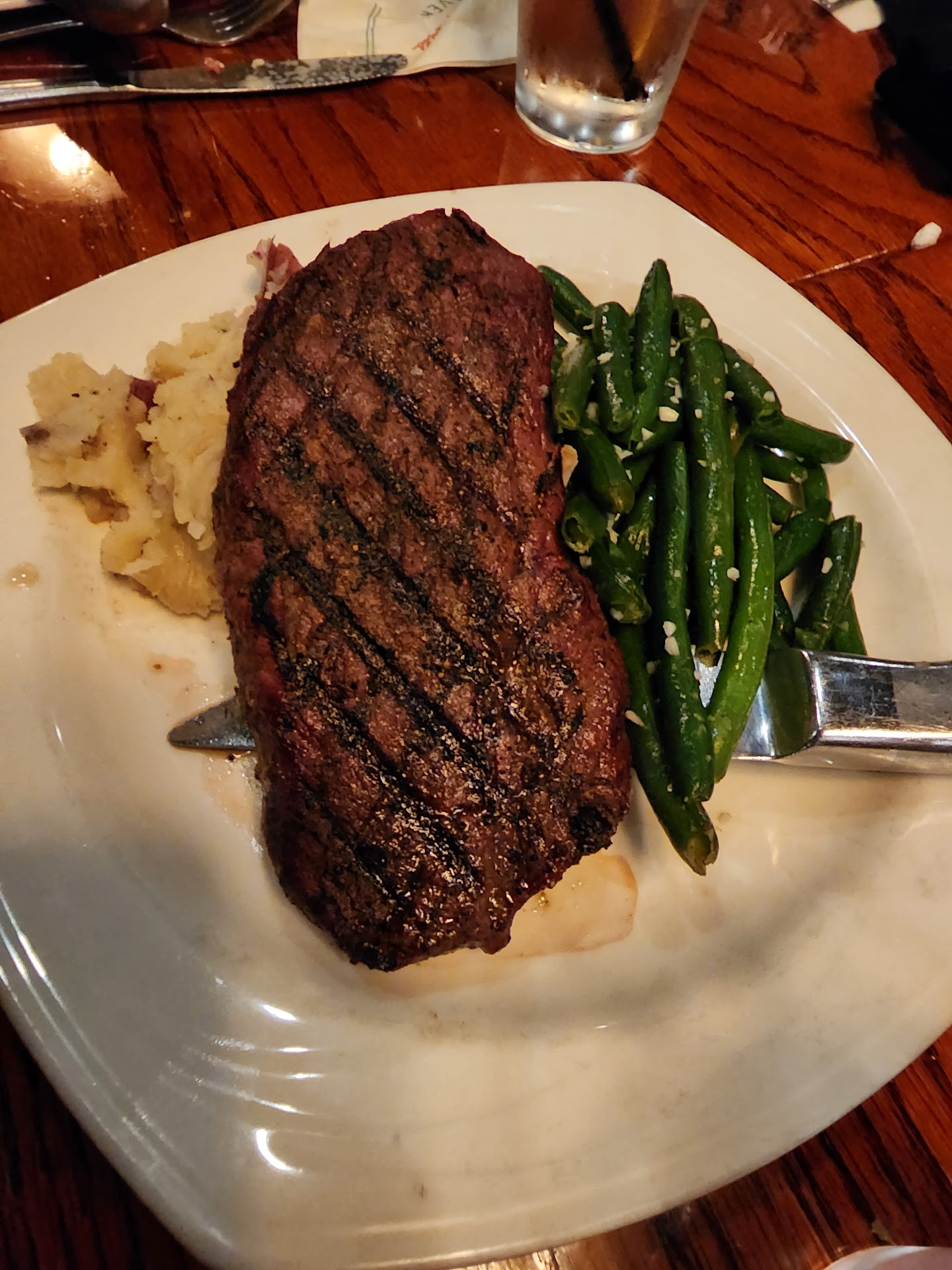 Read moreI had the catch of the day...food was good!..the server on the other hand was not...she forgot the caramel butter for my gf steak..butter came after gf was half way done with her steak..never asked if wanted it melted or not..just a thoughtful gesture would w been nice..because the butter was as tough as nails..it spread on like toothpaste...she never came to our table to ask if we needed anything..we had the water glasses sitting at tables edge to show her we were low..she never came to refill our glasses..but she went to both tables that were behind us(my side and gf side) to refill there glasses...let me go back because she never asked if we needed anything..I was very polite and raised my hand for her attention when she butter was not presented with her meal....fast forward..she never came back around...it made us feel less worthy...so I raised my hand again..this time for water since she never came back to our table...when I was looking at her walk to our table...she made a facial expression as if I were pissing her off and she didn't really want to serve me..she rolled her eyes and sulked her teeth..I was looking directly at her!!!..this is how I know!...we felt unworthy and to top it off..it was our 4 yr anniversary and we came there to celebrate because that was our very first date..so we wanted to rekindle that special moment...the server honestly ruined that experience...I don't know what irritated her about waiting our table but we were very dissatisfied and my gf is not one to ever speak up about bad service it she agreed and noticed the server lack of effort and care when it came to our service and experience at sam snead...I'm sure this isn't a common thing at this restaurant as our first time was a good experience...one of our main reasons for coming back..maybe next time...