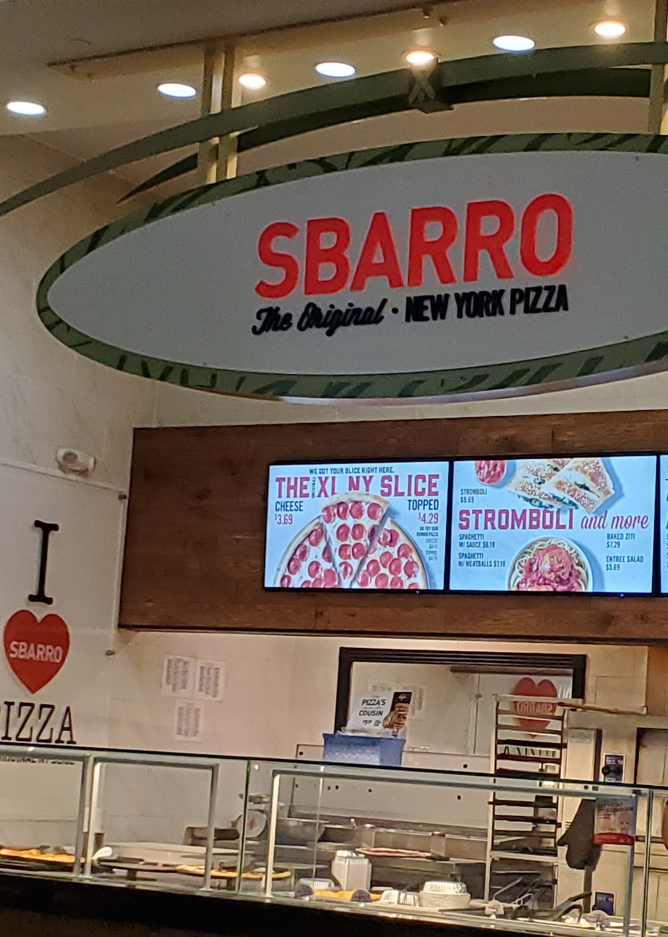 Well...... The pepperoni slice was nice & fresh, however, the service was less than sub- par. I guess from being a district manager I grade every customer service reps performance as they were one of my team members.... WITH THAT BEING SAID I Ordered a drink (young lady never asked size) and a slice. The lady made my flavored lemonade (SHE DIDN'T SAY THEY HAD NO ICE) and my sister & I sat and ate. We wanted another slice, afterwards, and young lady making the pizzas was very 'AS A MATTER OF FACT' when I asked if they had any other pizza coming out. As long as I've been eating at Sbarro I've NEVER been...