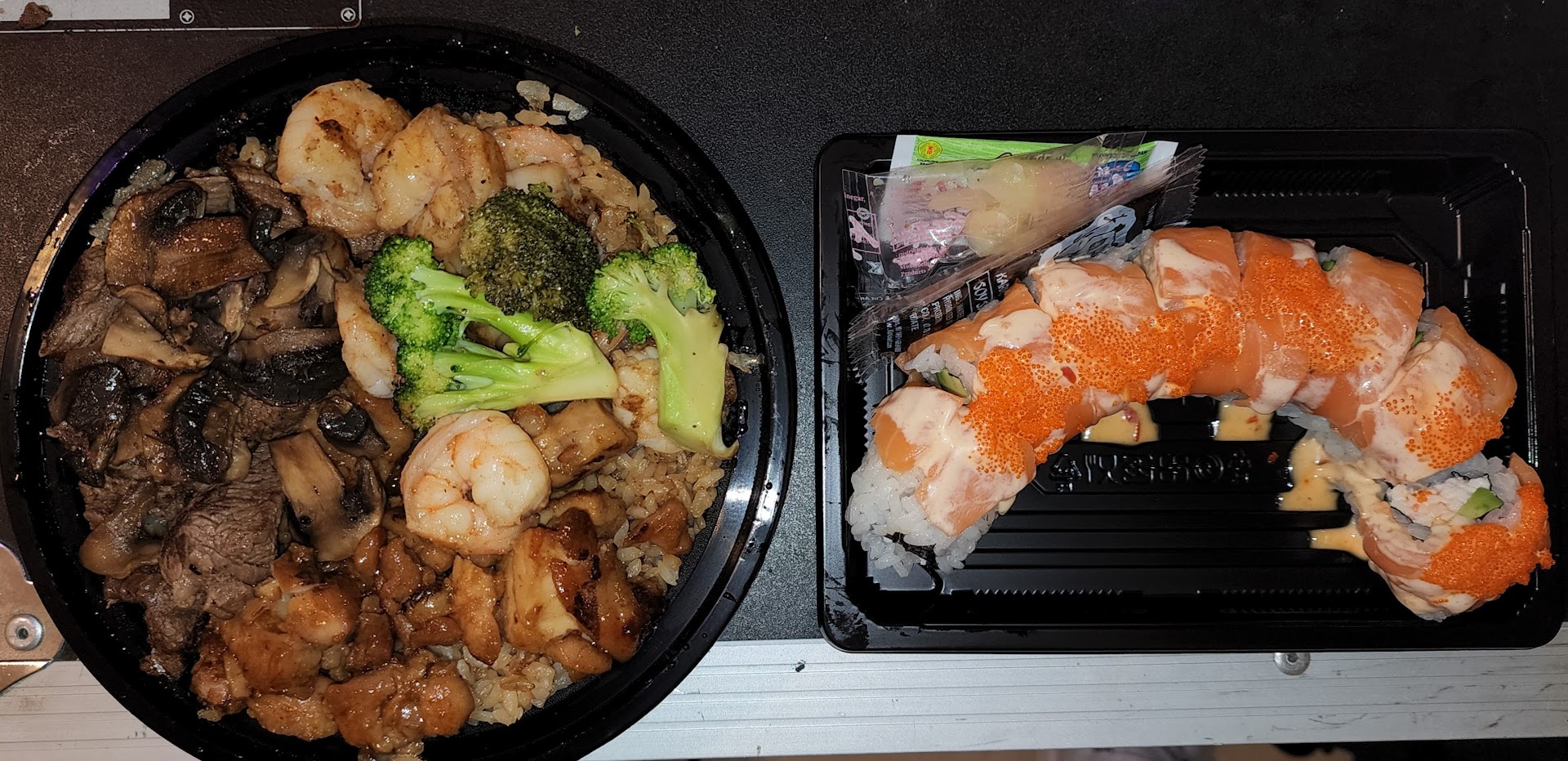 Read moreWhen this particular store first opened they embodied the same fresh food and taste as the soj near toys-r-us. But over the past couple years it's been cold meat, and rising prices. Meat is either over cooked or so soft it felt like puree in my mouth. Today we watched them reheat meat that had been sitting under the light who knows how long. The drink machine had been ignored and food was sent back because it was burnt. We told them about the soda machine but were ignored. At the end of our visit I walked up to the register and stood behind a man speaking with an employee about his meal, and waited to be acknowledged so I could get a bag for my left overs. Two women walked up behind me and were immediately taken care of. I assume I had been ignored because my husband had already complained about the service, twice. Once when they tried to serve us cold reheated food, and second when they gave him a burnt sushi roll. My disappointment with this much closer to my home location has put me off the franchise for good. Suggestions: fire the current staff...