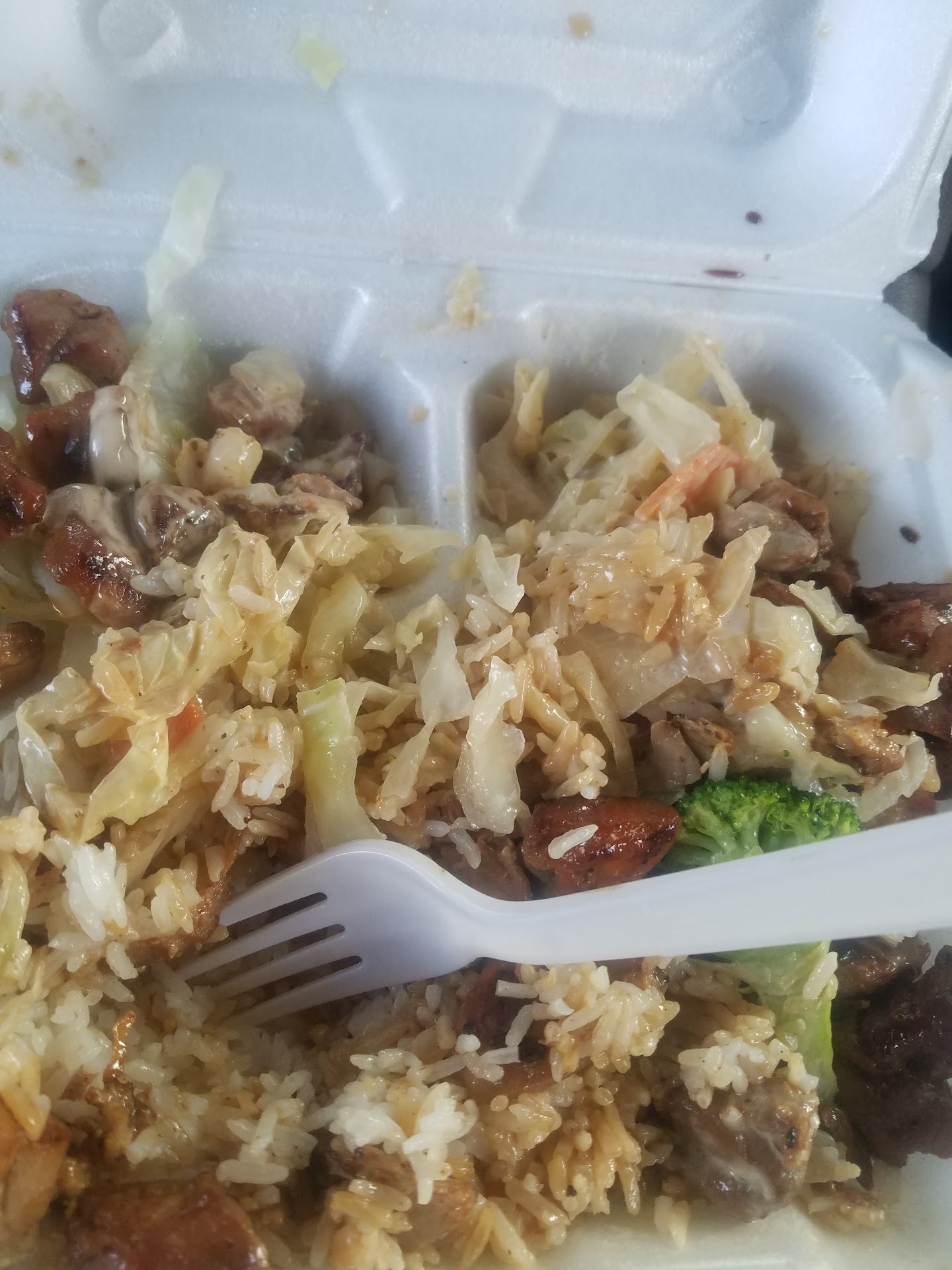 Read moreOrdered online, got there drive thru only. Called while waiting in line and dude was very polite. But had no clue about my order, cause he didn't check until the call. Ordered bourbon chicken with vegetable fried rice. They really lack creativity. They just threw broccoli and cabbage on top of the rice. Food taste good, but it's lack luster. Crab Rangoons were very cheesey but not very much crab like every other place, but the execution of the Rangoon...