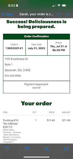 Ā Ā Ā Read moreThis location is a hot mess. I work close by so I am there weekly, but that's about to stop. They continuously make mistakes, but then send you home with the ruined sandwich, and are not very professional. Last time I had a woman use mustard instead of honey mustard, and when I pointed it out she grabbed a napkin off the counter and WIPED IT OFF. I was in disbelief... Not to mention it just smeared the mustard into the bread and ruined it. Today I went in and had my flat bread toasted (the kind I settled for, because they are always out of bread or produce) and she left it in there and moved on to the next customer without informing the other employee, so it came out like rubber, with burnt cheese on it. It's honestly one thing after another every time. I'll rather my business elsewhere...