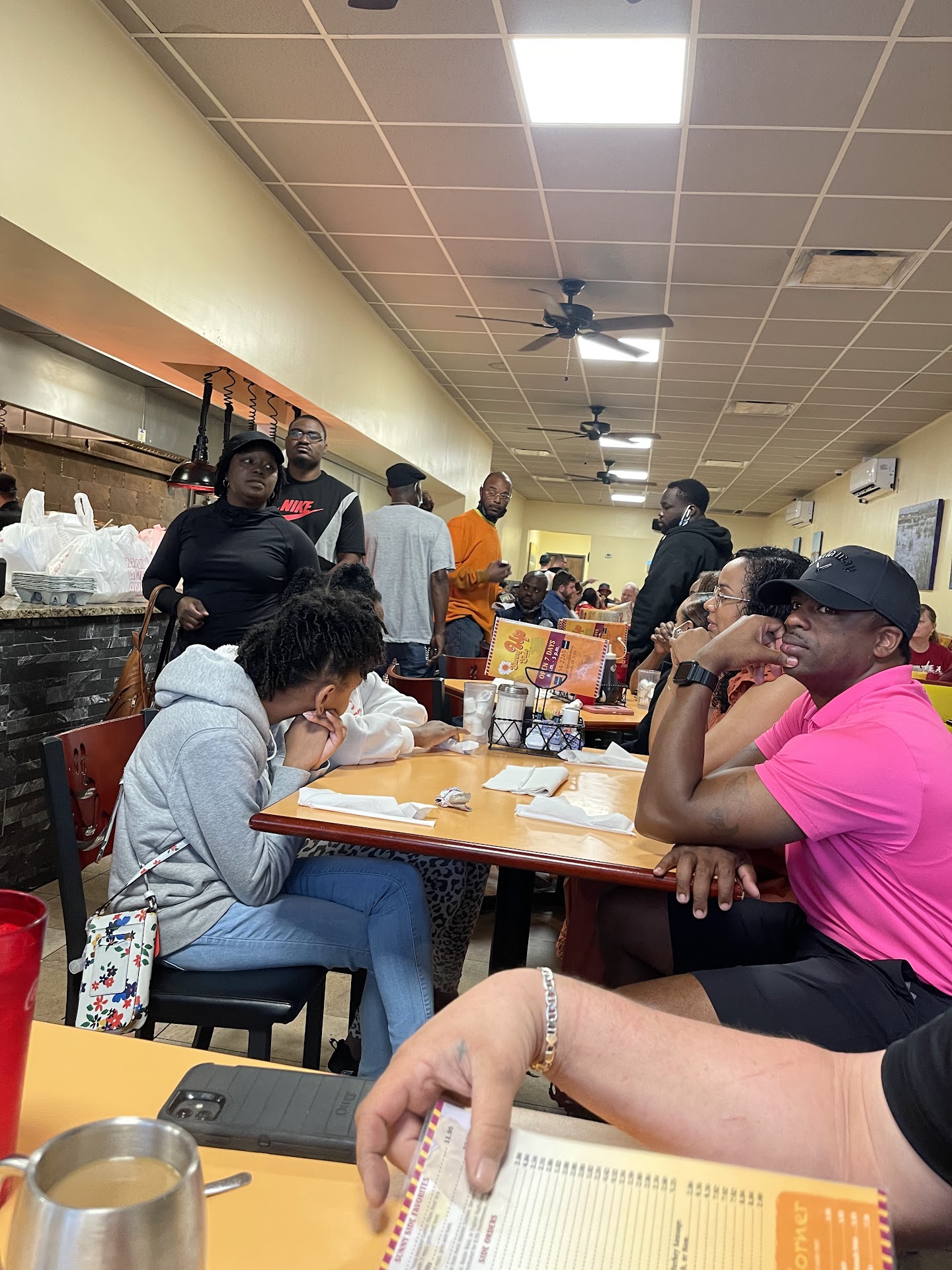 Ā Ā Ā Read morePretty Standard Diner food. Met the expectation. We ordered eggs with bacon and hash browns with onions and peas. Said she was just a slice of cheese mixed into our hash browns and it was not even fully melted it was still tasty but I was thinking that they would at least melt the cheese on top of it or something. The coffee was good the most were cute and we actually ended up buying one of the mugs to take home with us. Our friends have a chicken and waffles which I definitely would say I regret not getting because I think I enjoyed a bite of their food more than my own LOL the waffle really didn't have much flavor but the chicken was phenomenal and complemented the bland waffle well. The only reason I didn't give it 5 stars is because our waiter had a bit of an attitude and seemed very impersonal. I never understood why someone who seems like they don't like people, would choose to work in customer service. He kept taking his mask down to talk to us which made me Pretty uncomfortable especially since we were seated and removed our masks so we could eat & drink. I understand that it's hard to communicate through the mask but if you are wearing it for a protective measure than it should stay on your face and not under your chin. Did not like the fact that he came over and brought us are receipt before even checking to see if we need more coffee or if we were done or wanted anything else. He also split the check automatically and just assumed that we were with the person we were sitting next to rather than across from.....never asked us how we wanted to check split if we even did at all...