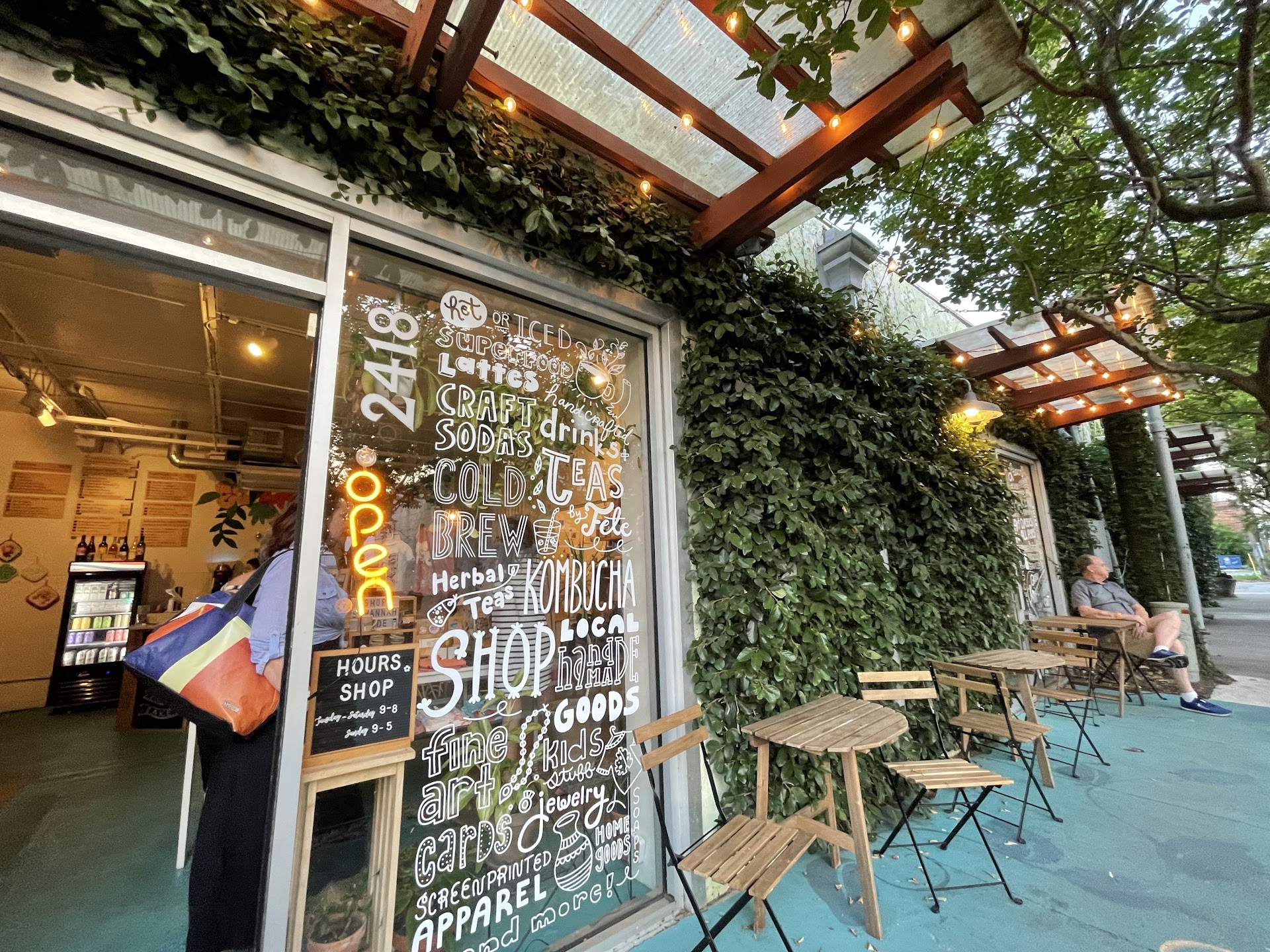 Read moreSuch an amazing atmosphere! Cute and cozy and perfect to do work or bring friends and grab a glass or bottle of natural and organic wine and do one of their completely free and self-guided craft nights! They also support all local artists and have a wide range of things to choose from which I LOVE! They sell Fete cocktail infusions which are such a fun and thoughtful gift for any loved one too! All of their lattes are vegan and come with oatmilk! They also have vegan and non-vegan pastry options and Gluten Free crepes that can be Vegan or not. Such a delicious menu from the superfood lattes, espresso lattes and natural wines⌠I wanted to try EVERYTHING the first time I came in. I think I have by now. Definitely worth seeking out. Itâs across the street from Starland Yard, Two Tides brewery and Starland Strange which is such a cute ice cream, boba and fun shopping too for a whole day of adventure! Clearly...