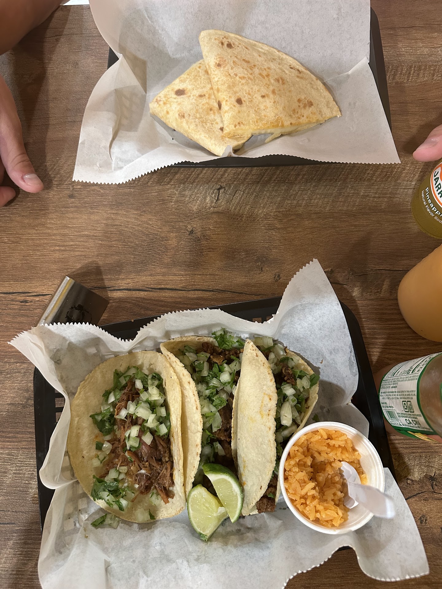 We had a carnitas, al pastor, carne asada, and a shrimp taco to start, with everything on it. Then we had to dive back into another carnitas and carve asada. So good.