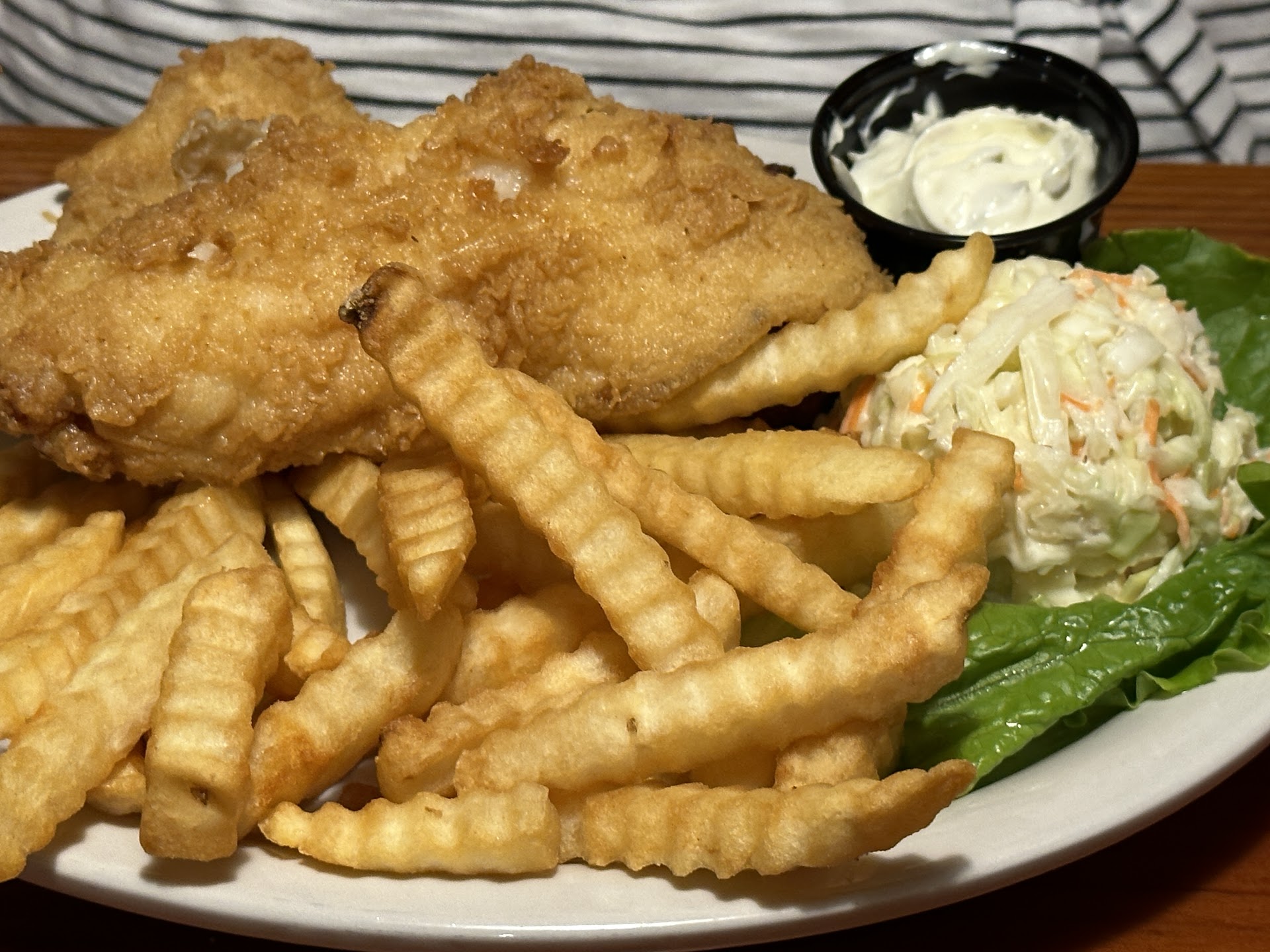 We started with the spinach dip, which was good but not great. The cheese was a hard layer on top that required the spoon to get into the chip. I also ordered a cup of chowder (the crab, I believe). It was also good but not great. It was more of a corn chowder than a seafood flavor. I probably should have stopped there, but I got the seafood scampi, which (again) was good. The seafood in it was clearly fresh and perfectly cooked. The pasta was good, but the artichokes were kind of an afterthought in the dish. Canned and mostly flavorless. The sauce was thin and less lemony than I expected for a lemon cream sauce, but it was good. I couldn't finish it. My partner got the Reuben with both fries and slaw. The fries were not seasoned (I tasted one). Salt seems to be a theme in a few of the reviews here, which I didn't see until coming to leave this one. A neighboring table recommended ordering extra 1000 island for his sandwich, and he said this was a good idea. Otherwise, the sandwich would have just been a lot of meat on dry bread. He did say it was good, though, and ate it all.